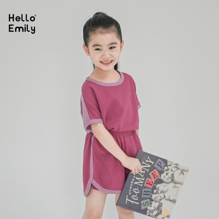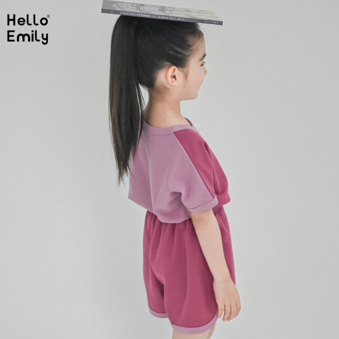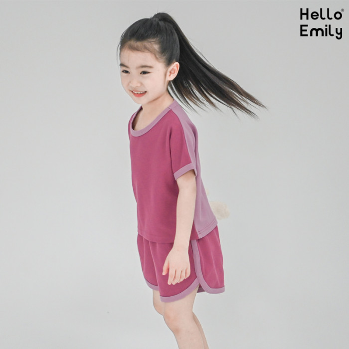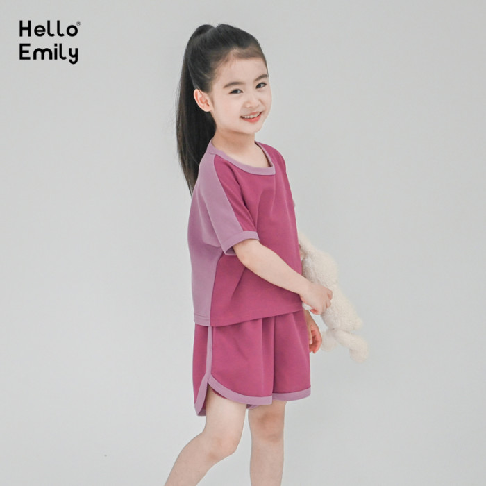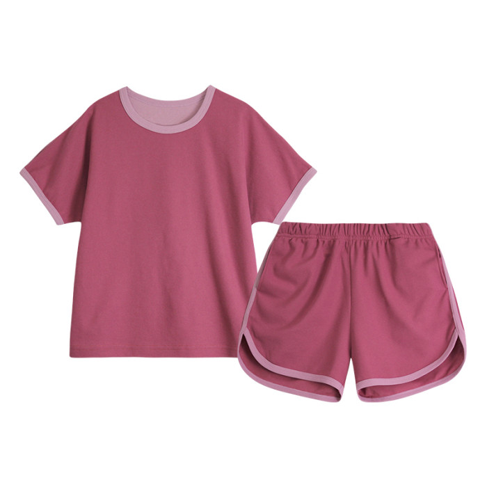 洋氣童裝2025新款夏裝中童女紫色套裝短袖T恤撞色男童運動服裝785