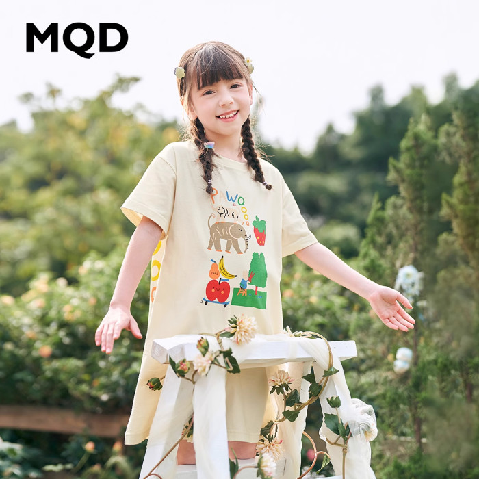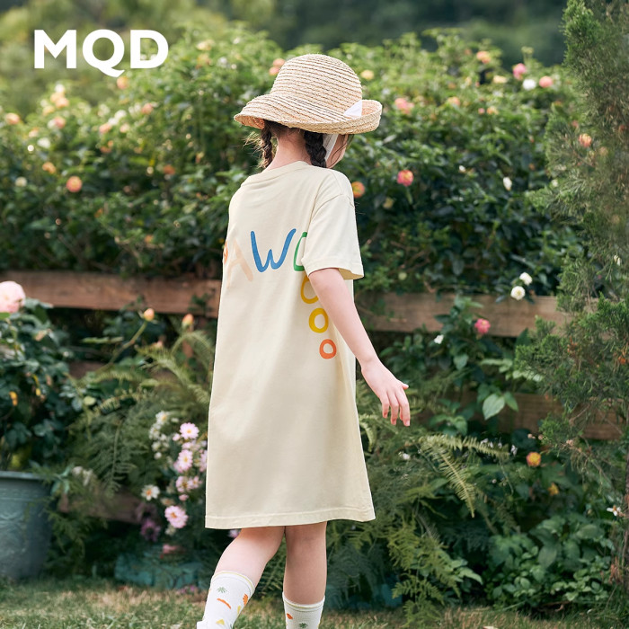 MQD童裝2025夏季新款兒童連衣裙夏裝女童學院風T恤裙寬松短袖裙