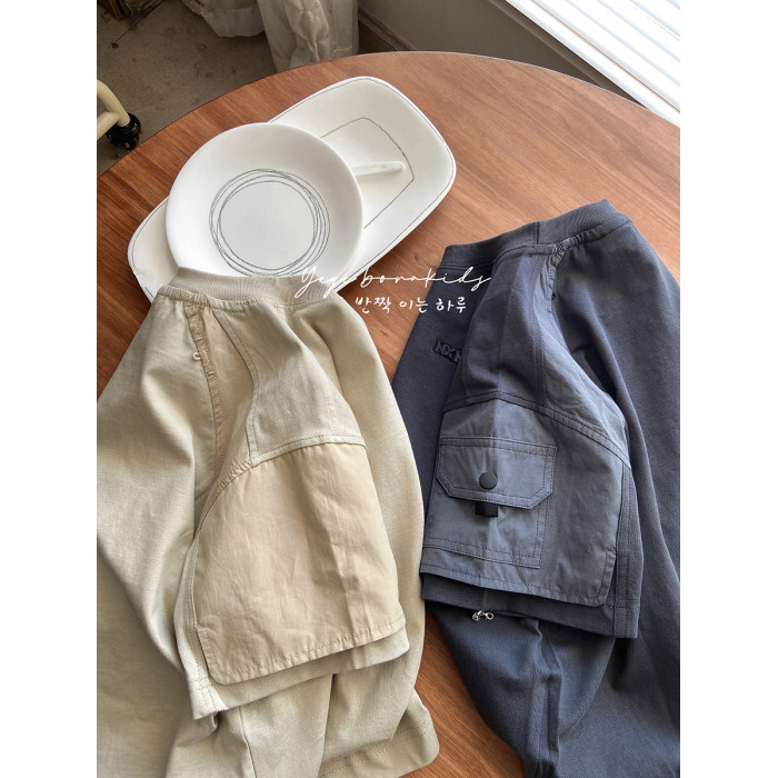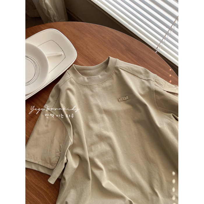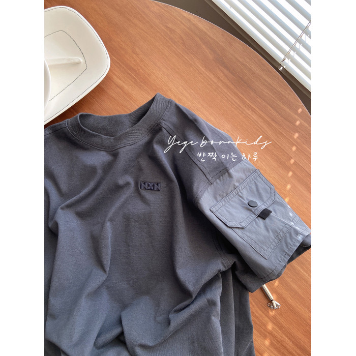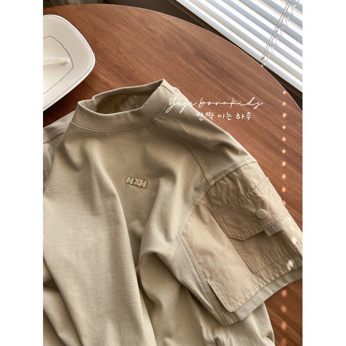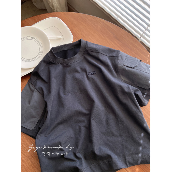 波拉bora韓國童裝男童t恤2025兒童工裝拼接夏短袖中大童女童上衣