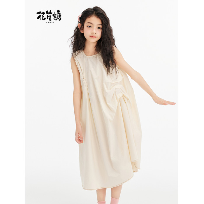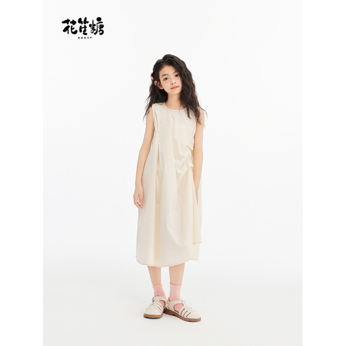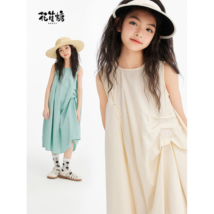 花笙糖女童夏季不規則設計感小個子連衣裙背心長裙大童棉裙子親子