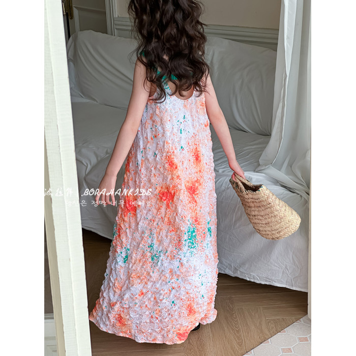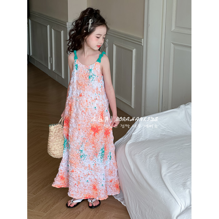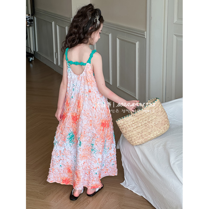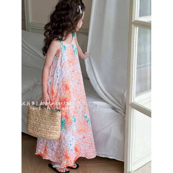 波拉韓女童甜美碎花裙2025夏天女孩連衣裙子兒童洋氣吊帶裙背心裙
