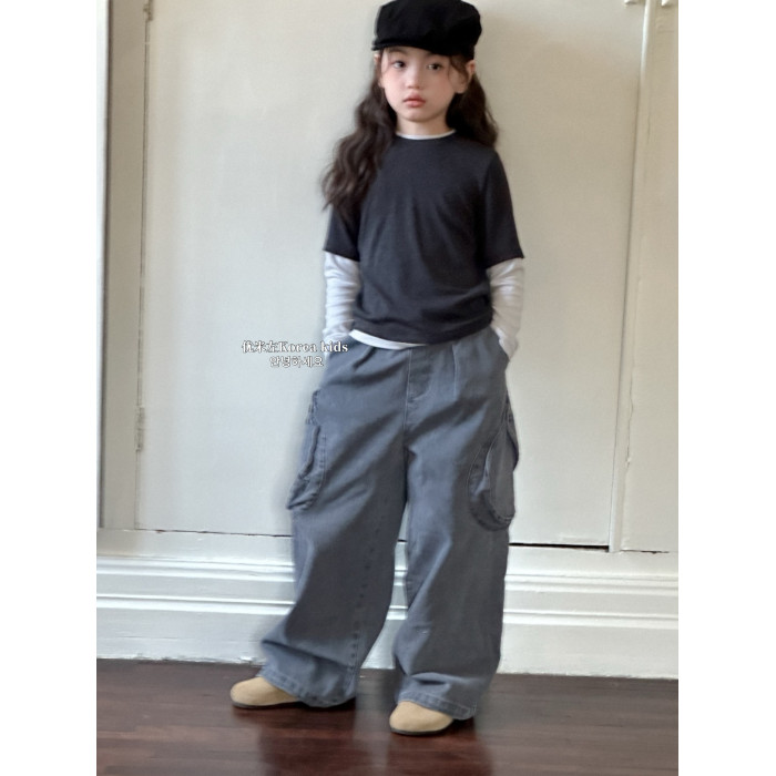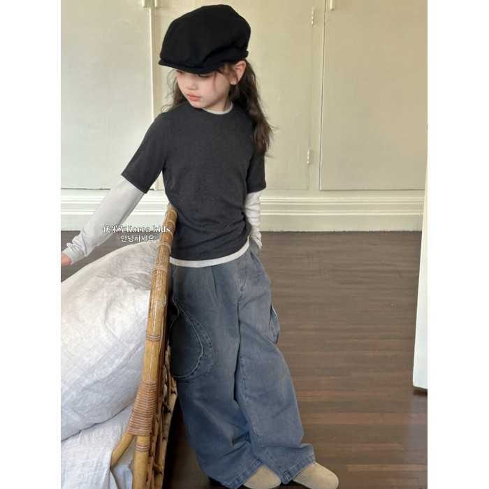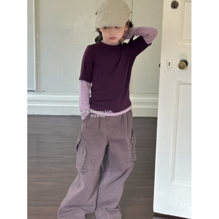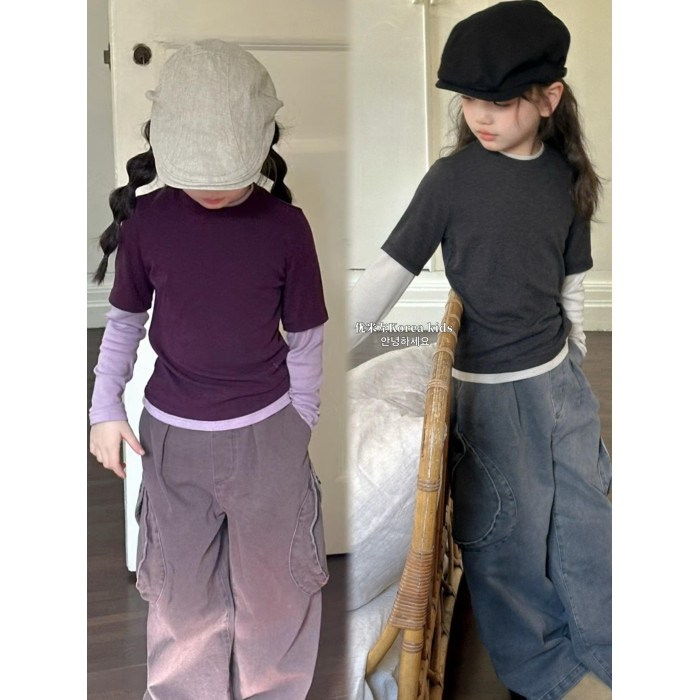 波拉bora童裝女童假兩件長袖T恤打底衫新款秋裝女孩修身氣質上衣