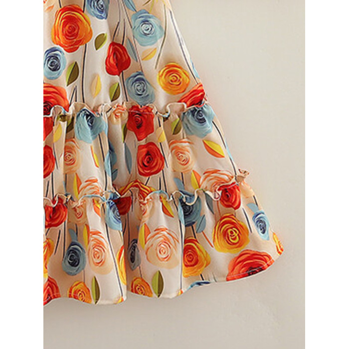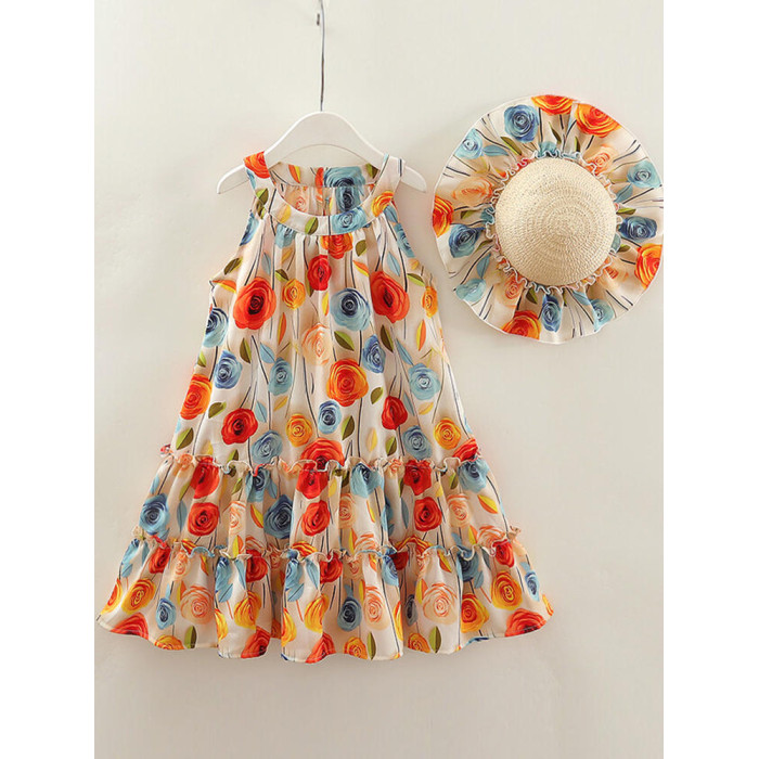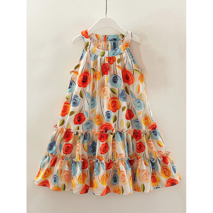 女童吊帶連衣裙夏季薄款大兒童沙灘A字裙子夏裝9嵗女孩碎花公主裙