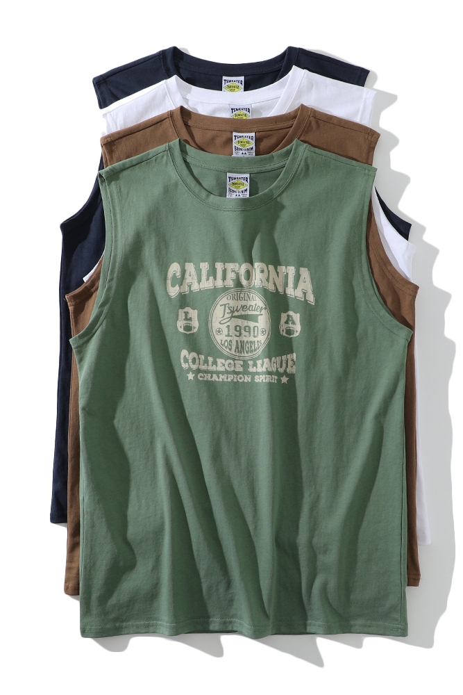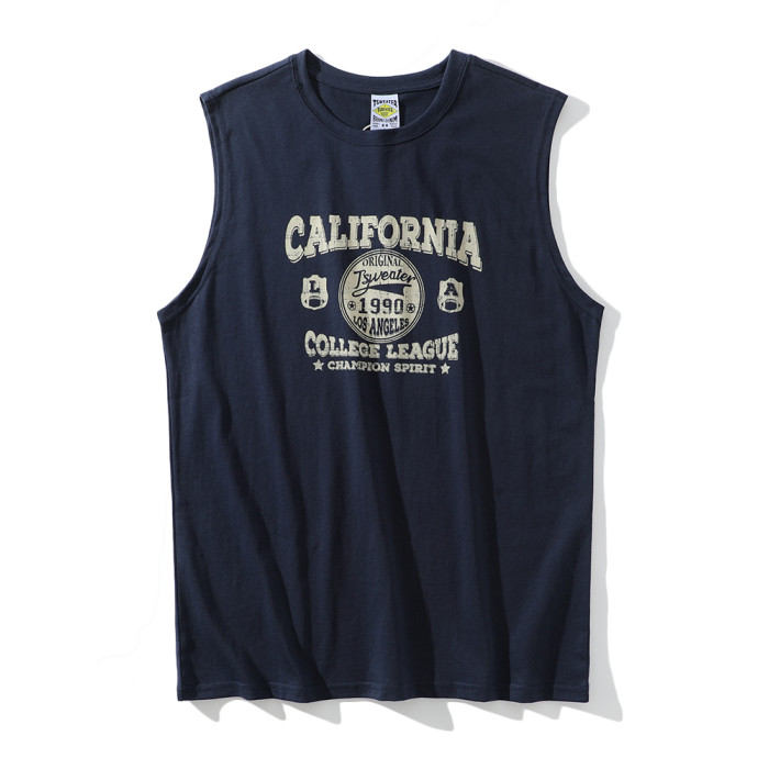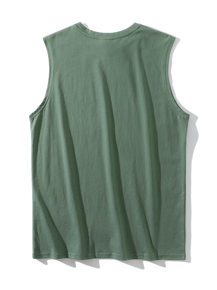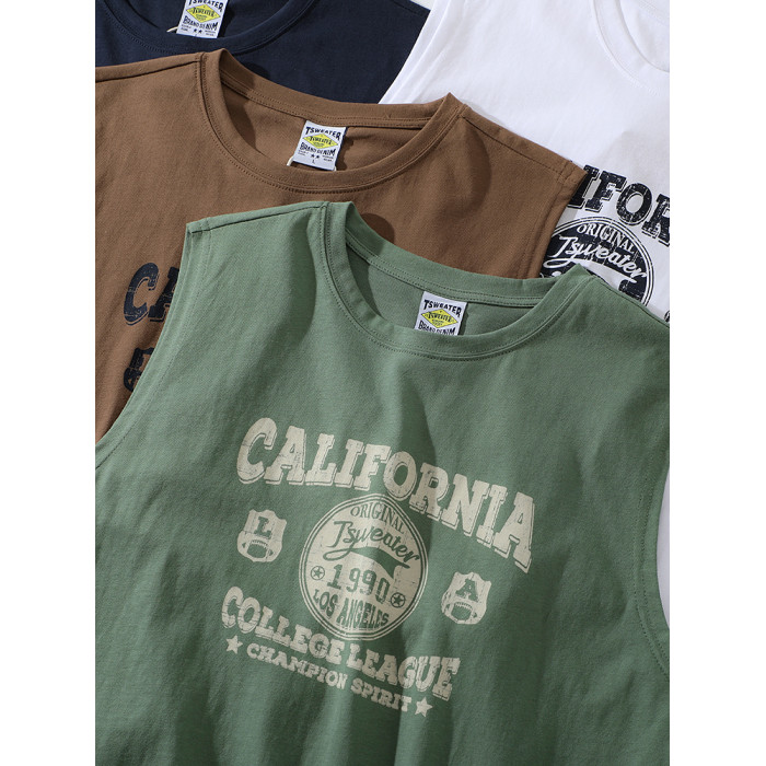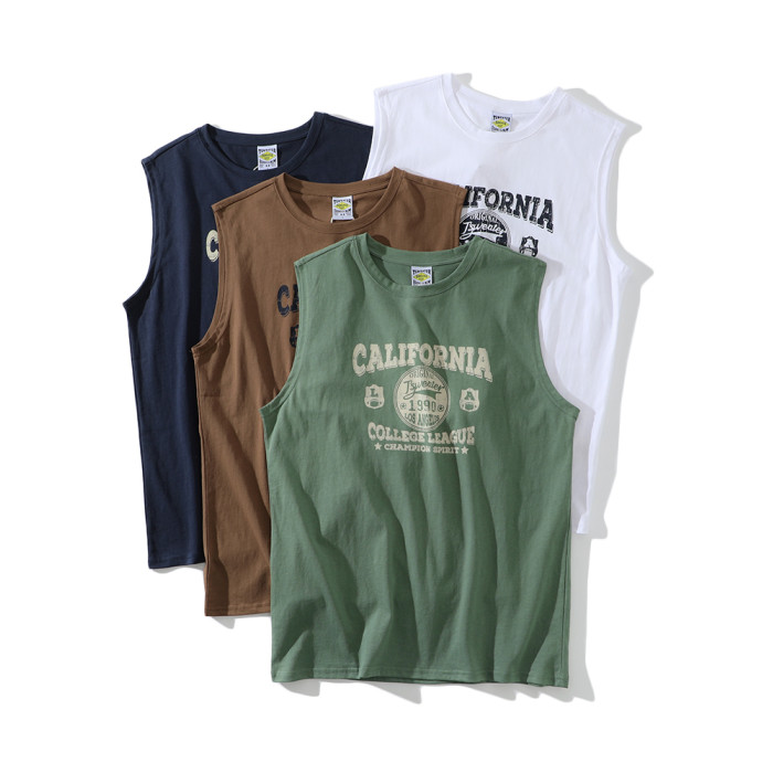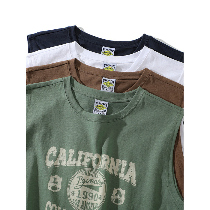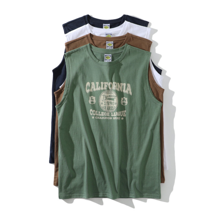美式復古男汗背心2025夏季新款時尚潮流運動健身重磅純棉無袖坎肩
