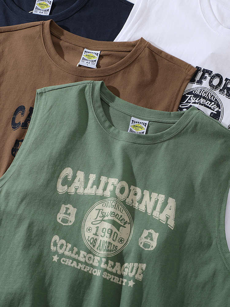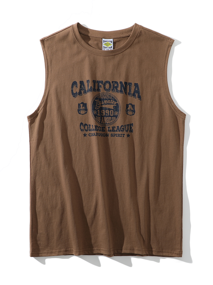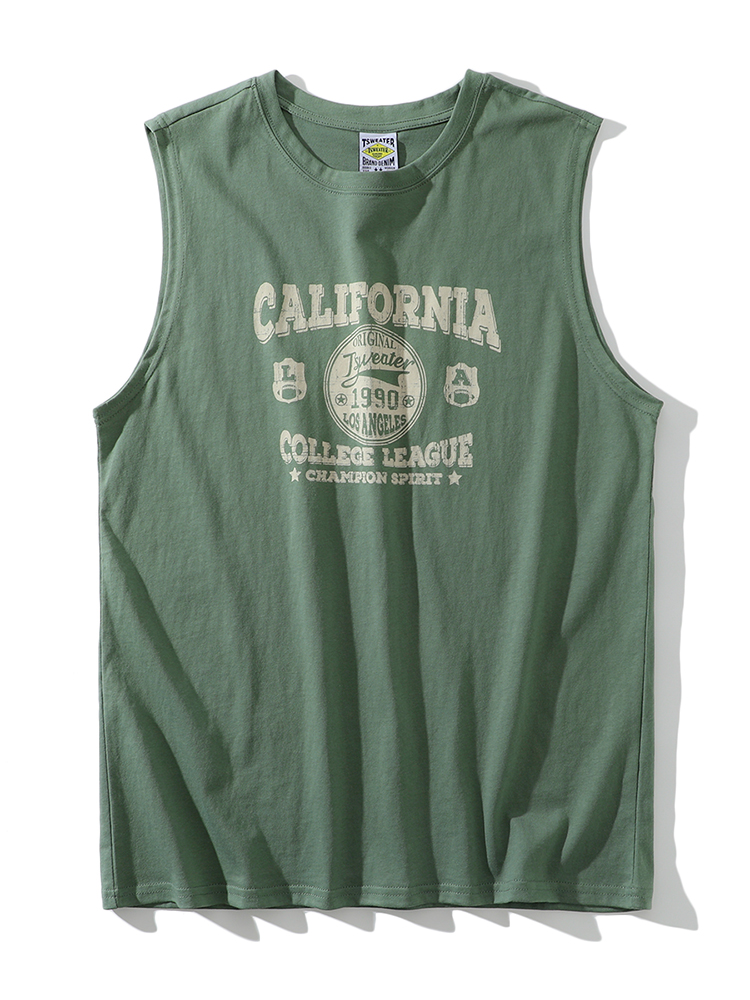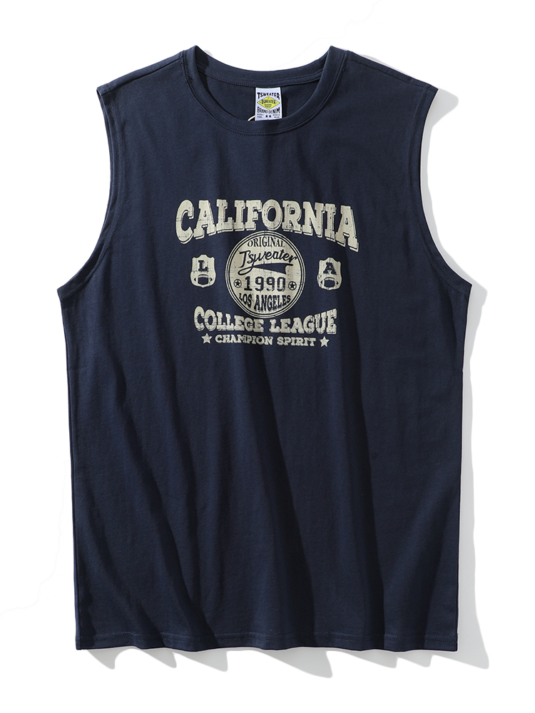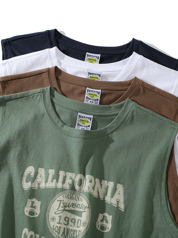 美式復古男汗背心2025夏季新款時尚潮流運動健身重磅純棉無袖坎肩