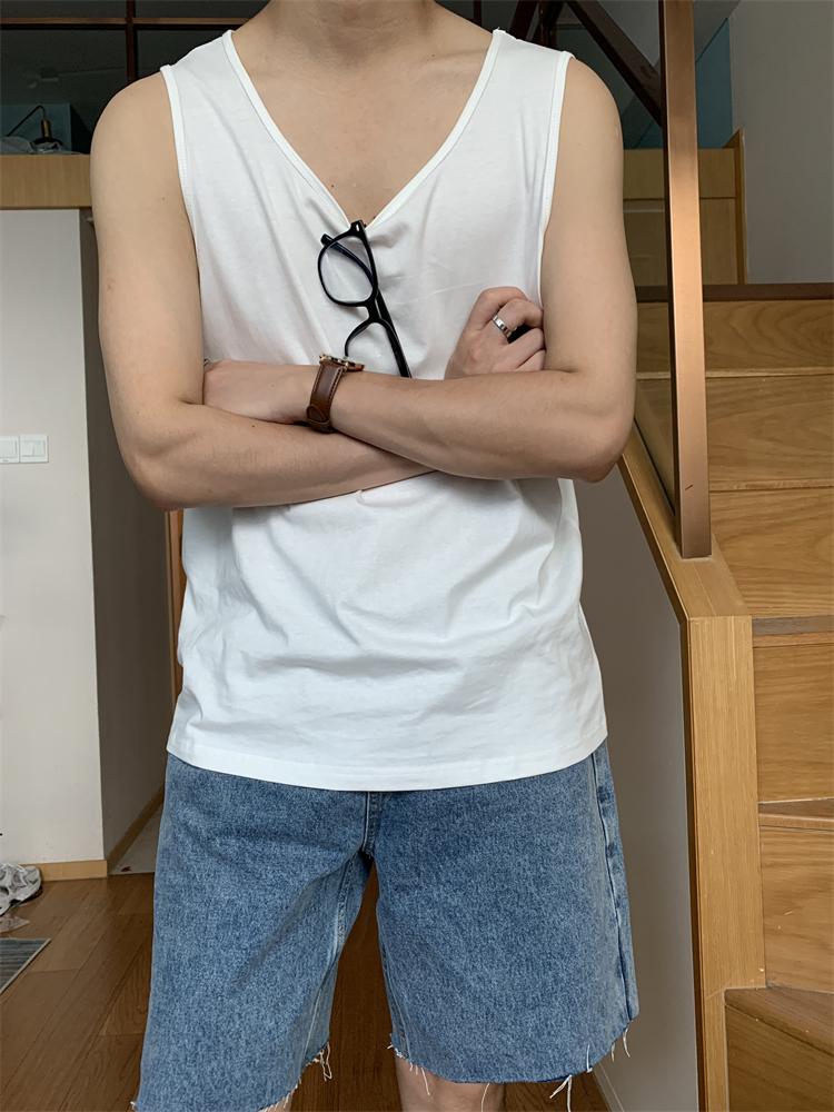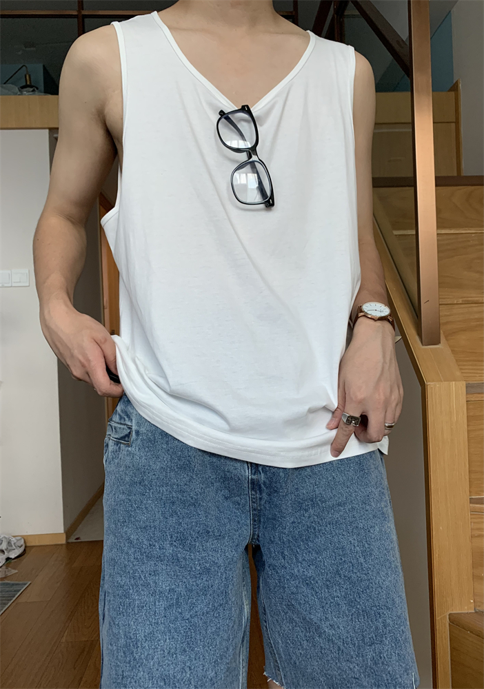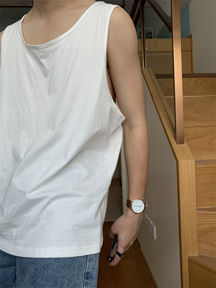方人也要韓版無袖背心男寬松汗背心套頭休閒純色流行坎肩上衣