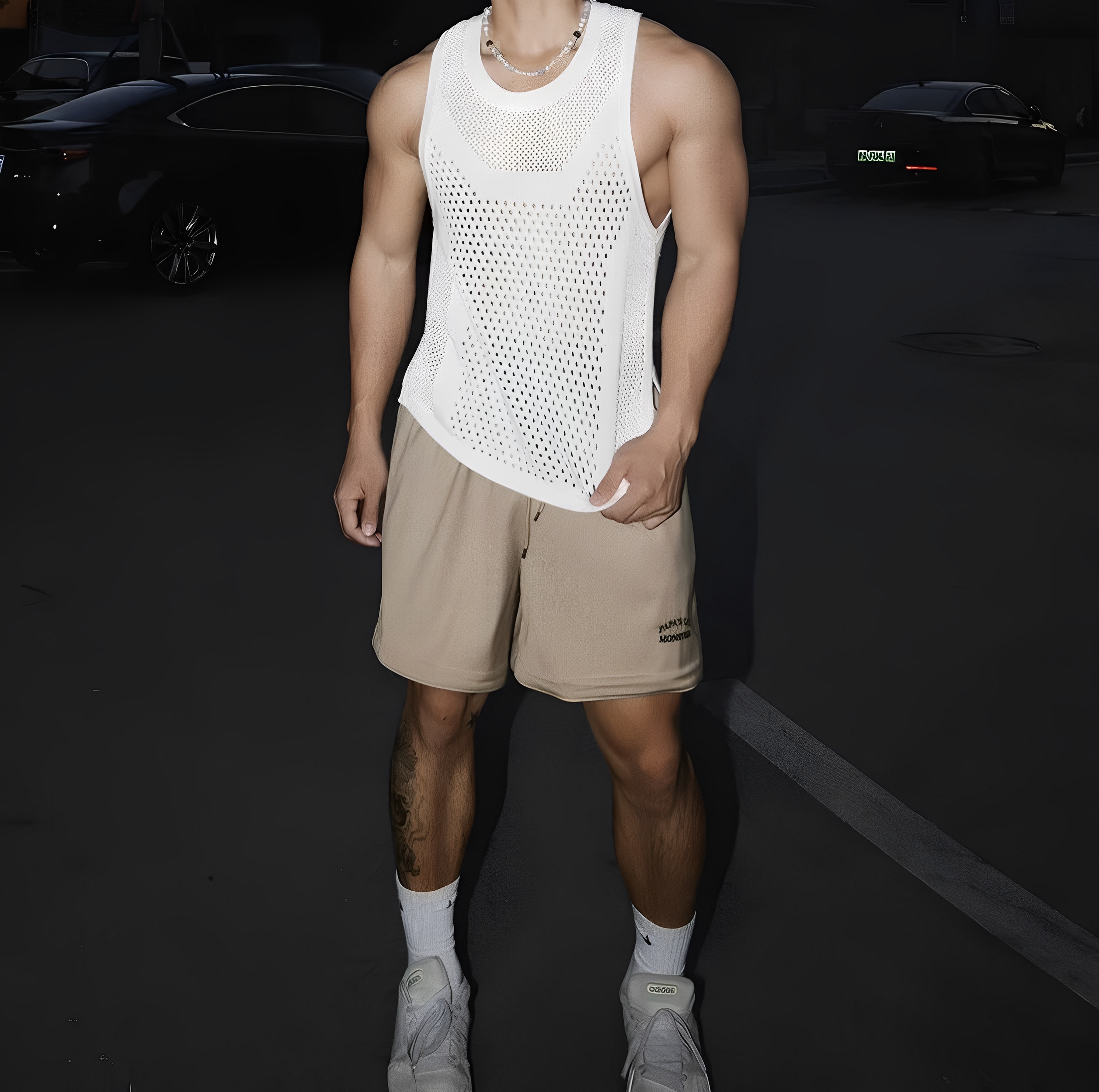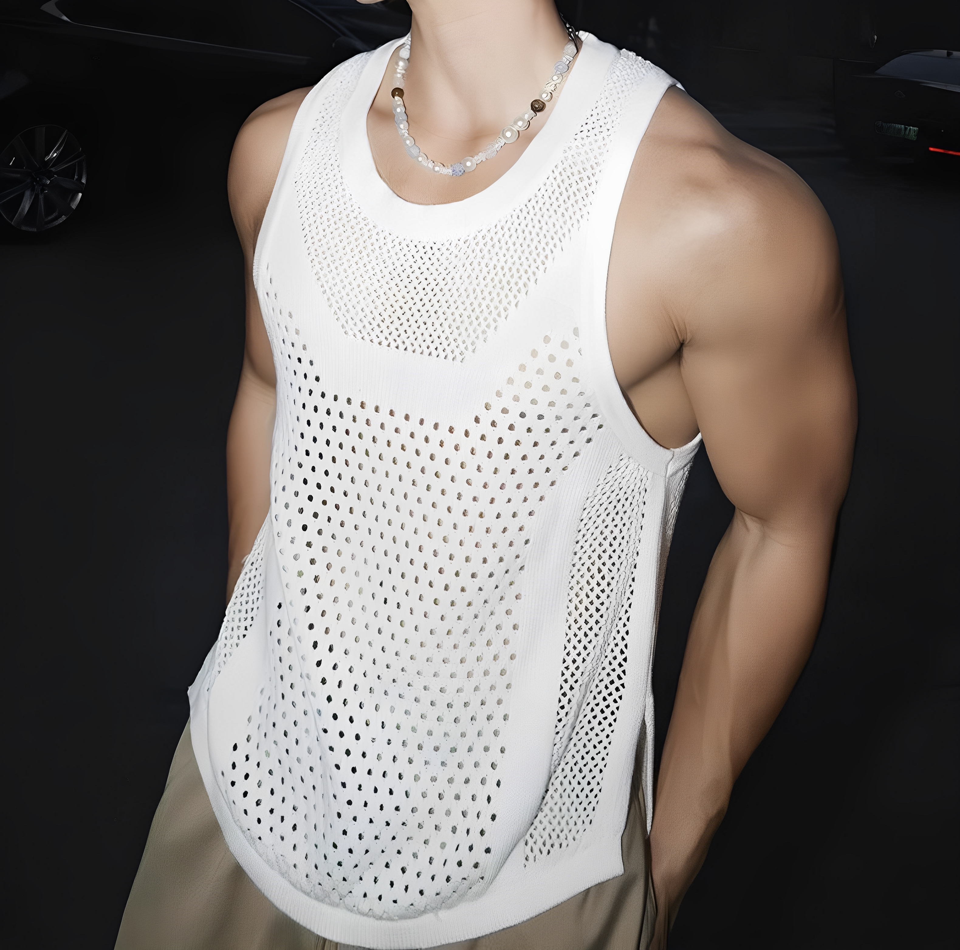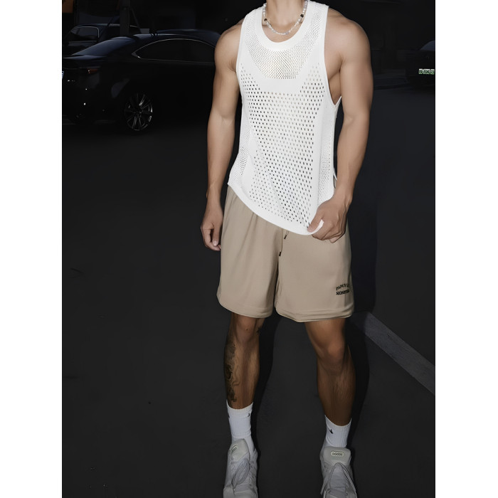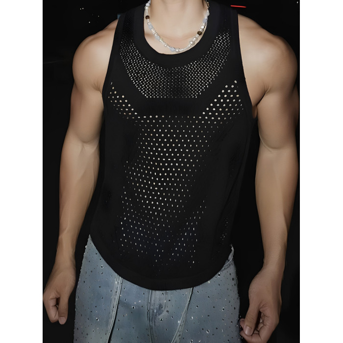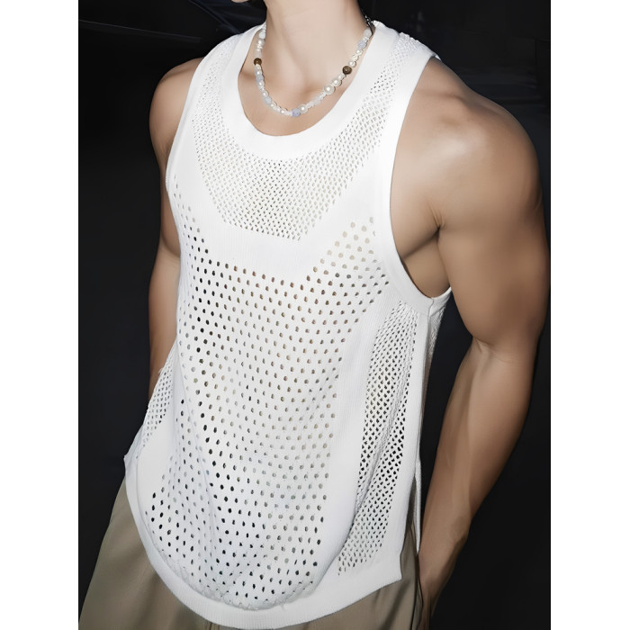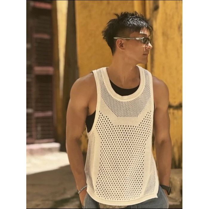 新款美式街頭鏤空針織背心男夏季寬松休閒運動透氣無袖坎肩上衣潮