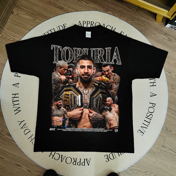 MUC托普利亞T恤UFC印花美式高街重磅純棉短袖拳擊運動復古背心
