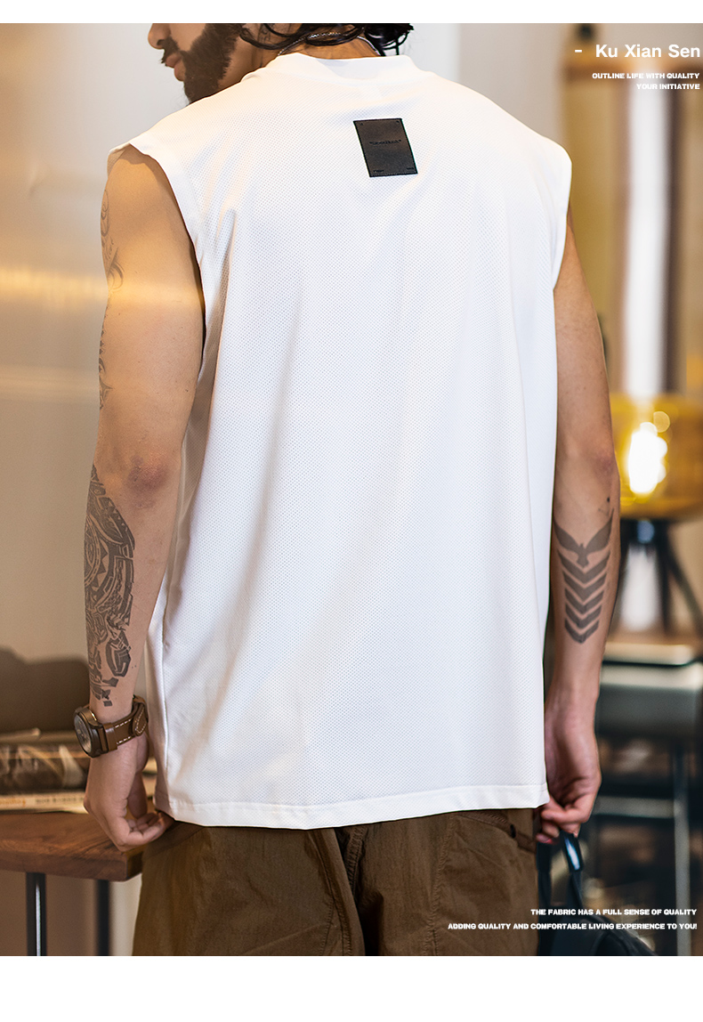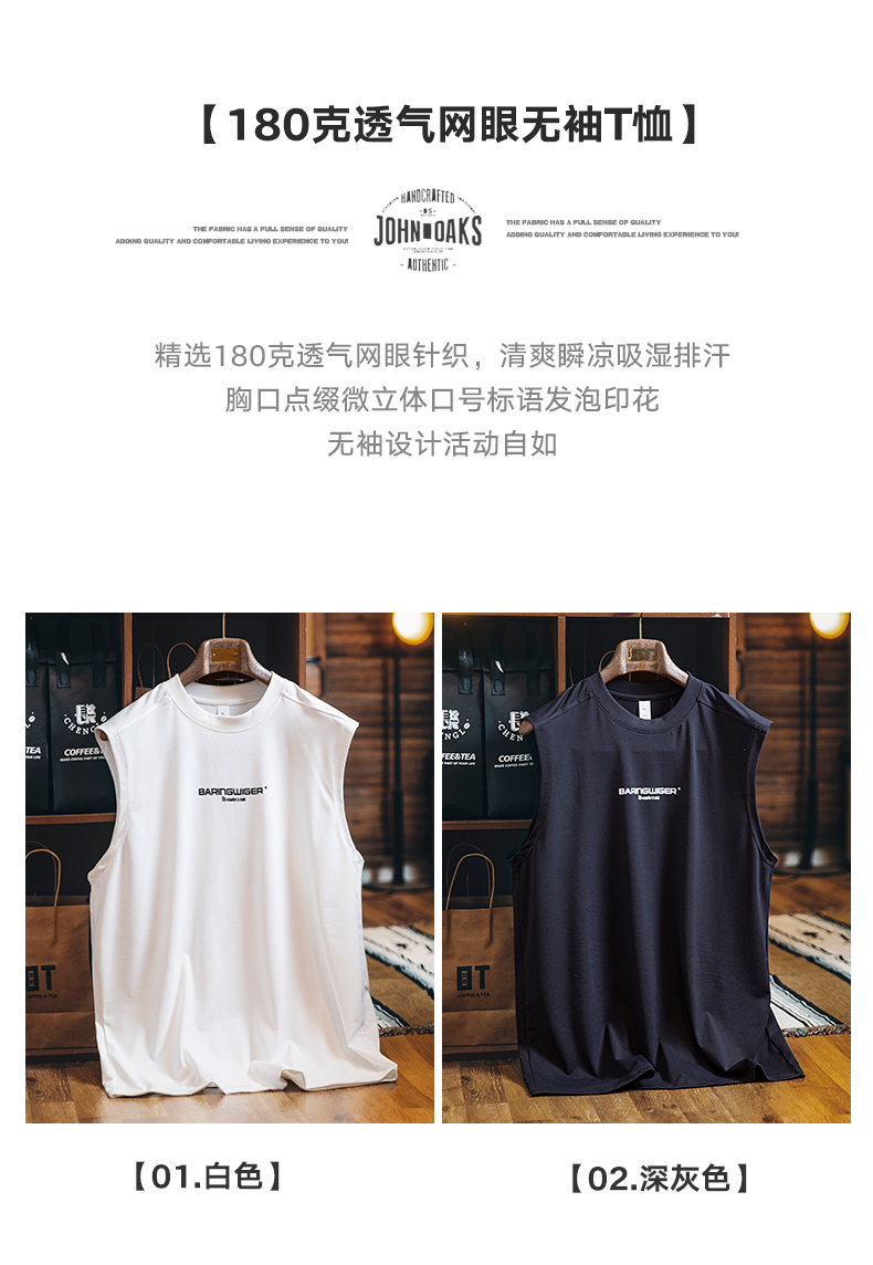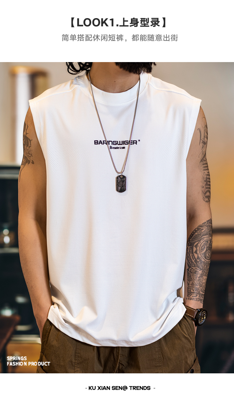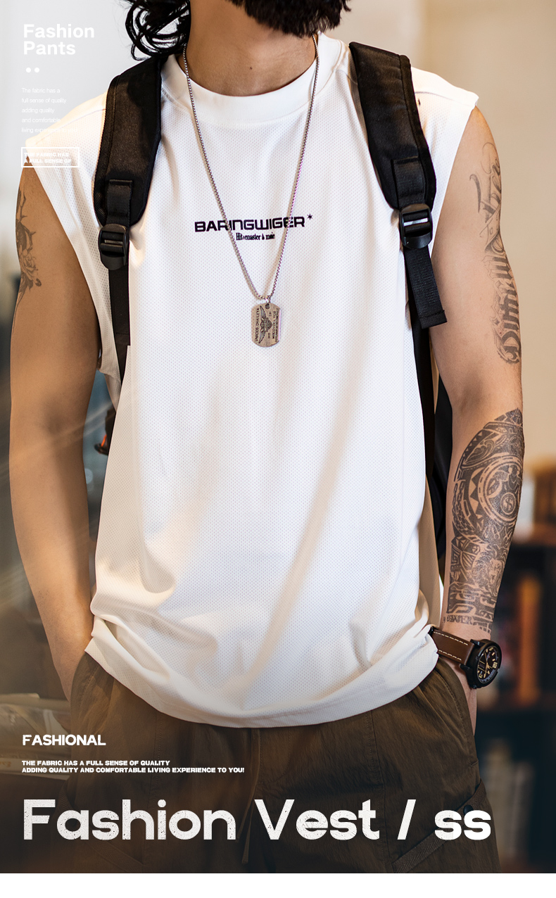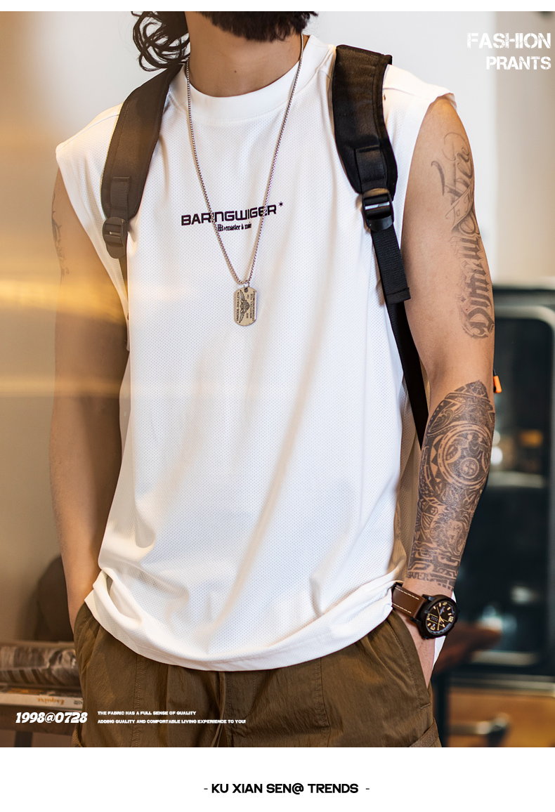 2025新款透氣網眼運動背心男款夏季美式印花跑步健身坎肩無袖t恤