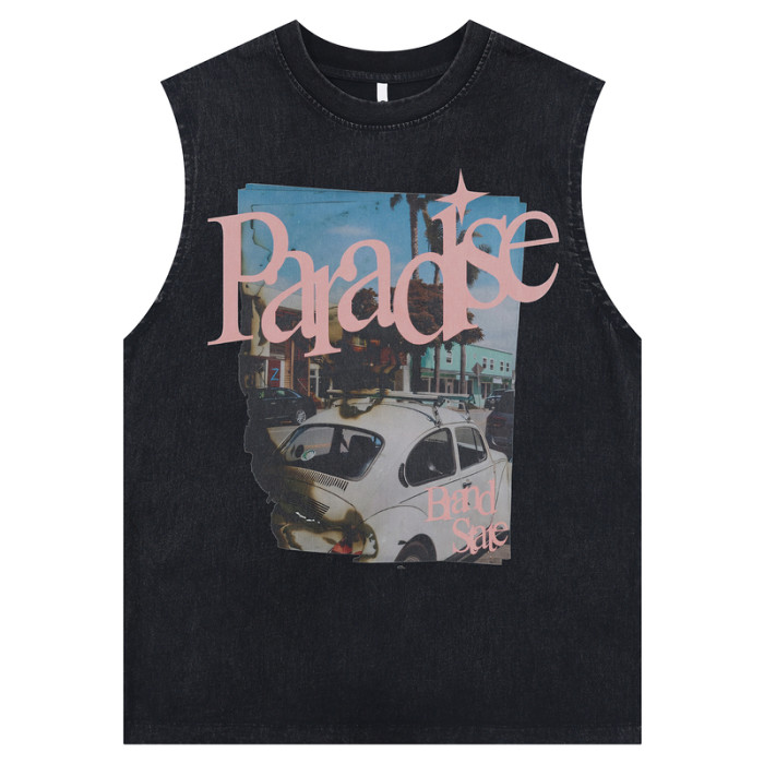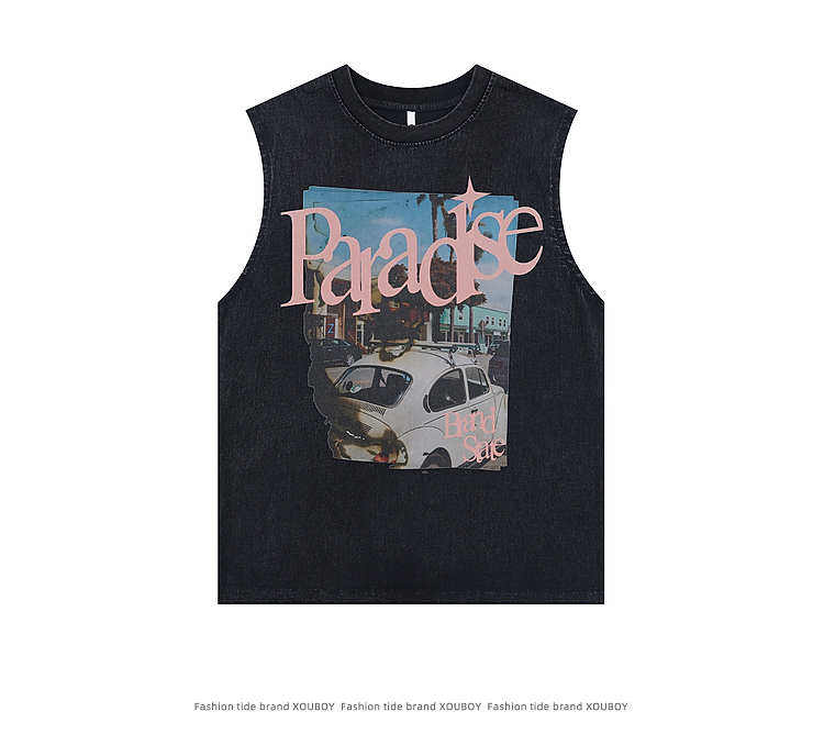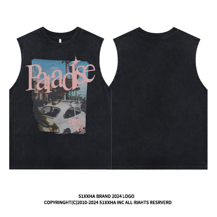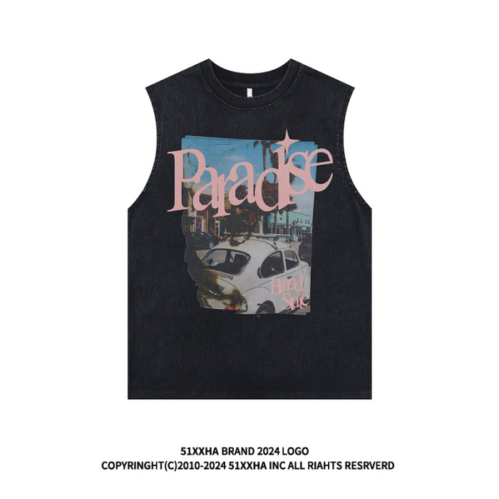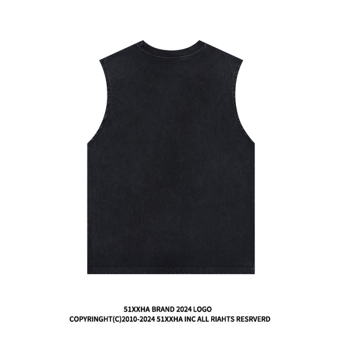 51嘻哈vintage復古年代感純棉無袖坎肩男阿美哢嘰寬松情侶背心潮
