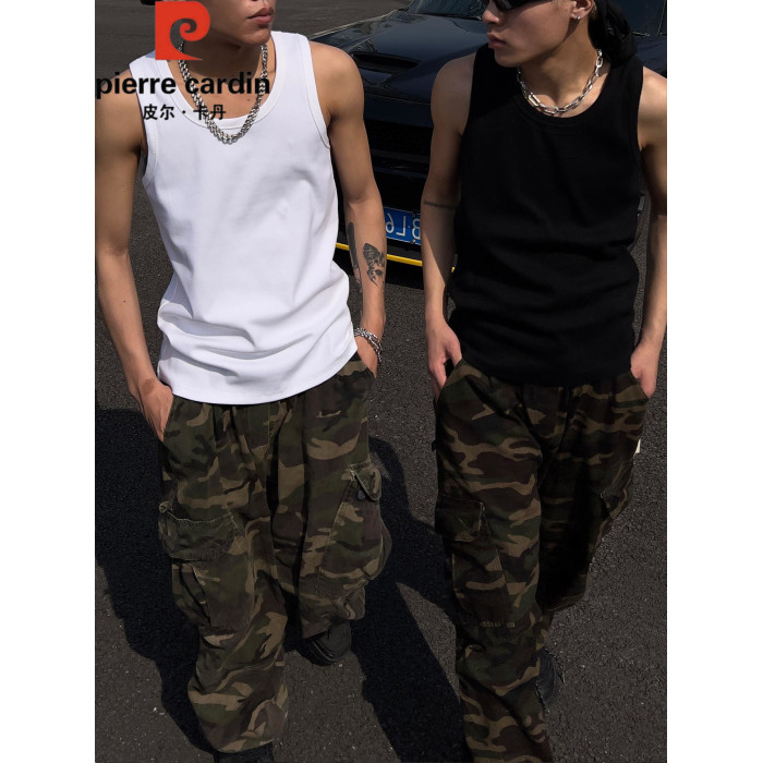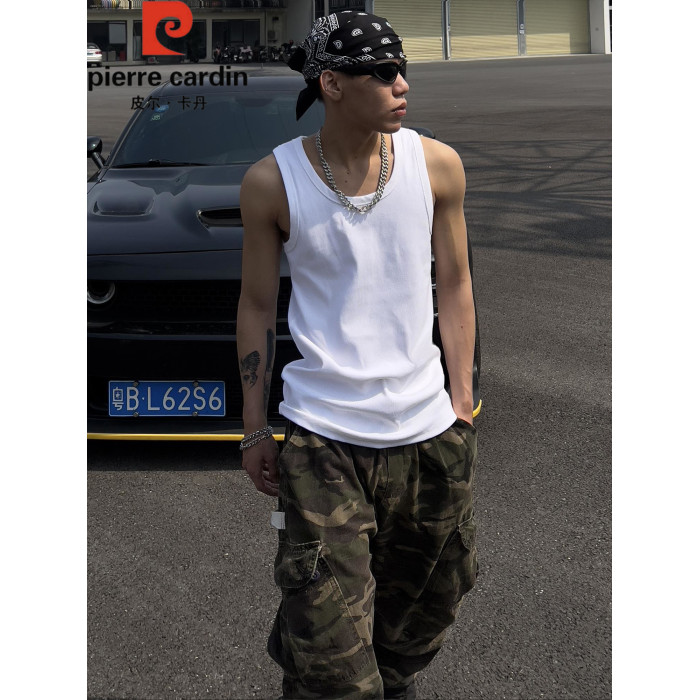 皮爾卡丹背心男夏季2025年新款寬松運動打底衫男士坎肩無袖t恤潮