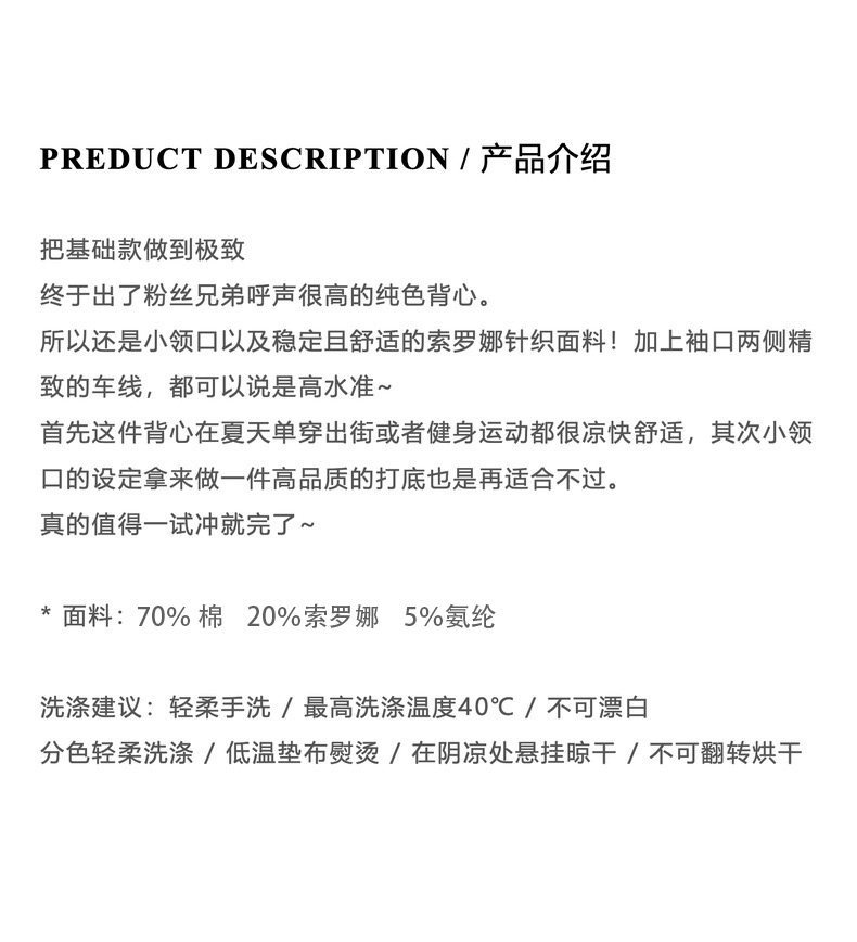250g索羅娜冰涼感小領口背心男速乾防曬運動坎肩無袖短袖T恤夏