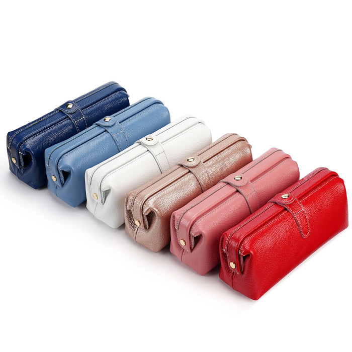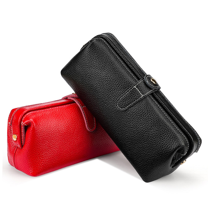 新款洗漱包口金化妝盒眼影口紅化妝工具收納包護膚品手拿包真皮