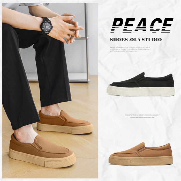 男士帆布鞋懶人一腳蹬休閒透氣布鞋低幫韓版潮流男開車鞋子1558