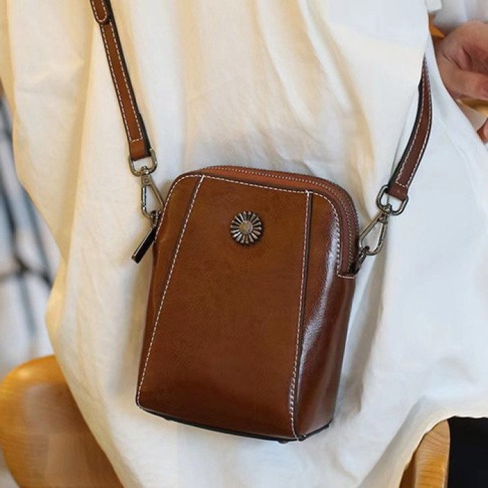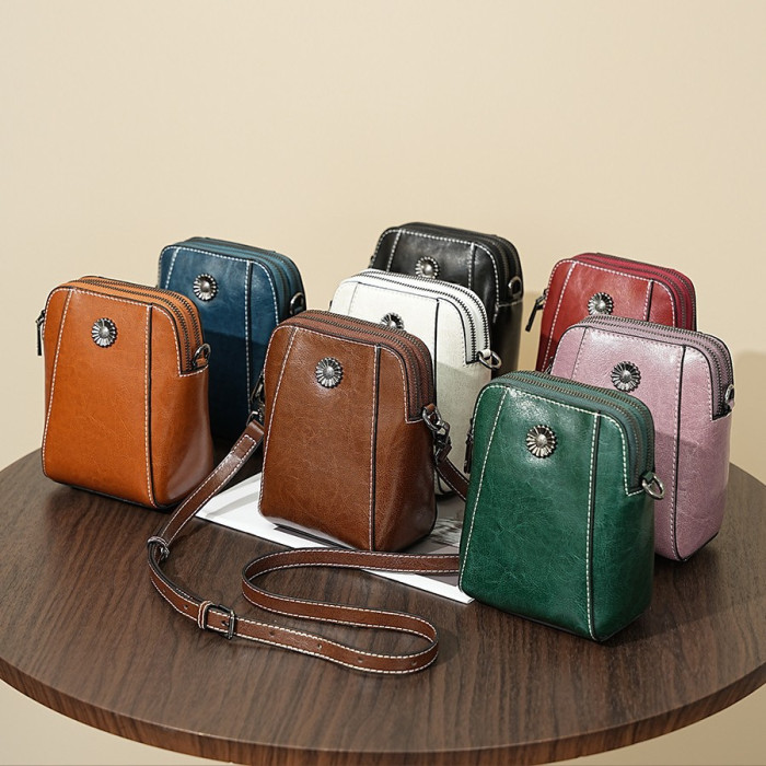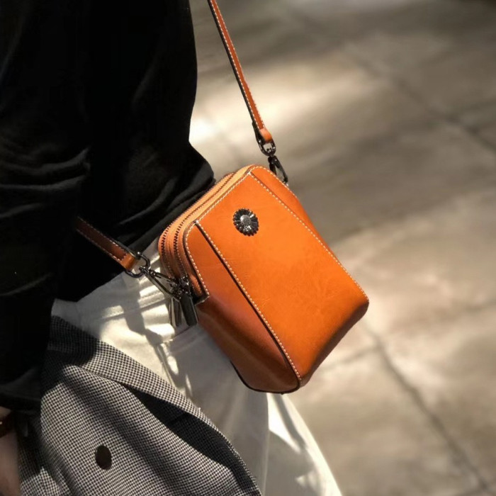 真皮女包時尚斜背單肩小包包小衆通勤牛皮手機包女拉鍊小包