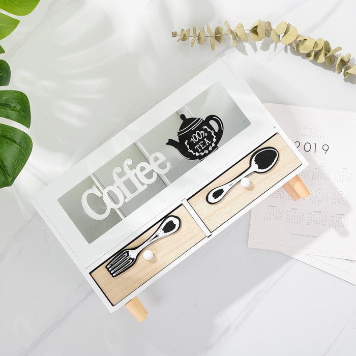 復古木質桌面小收納櫃抽屜式分格收納盒辦公筆筒用品餐具儲物盒子