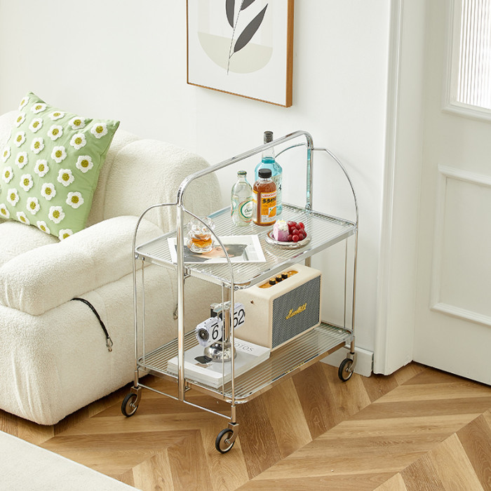 高級中古風玻璃小推車網紅ins客廳沙發邊幾小茶幾移動餐車折曡置