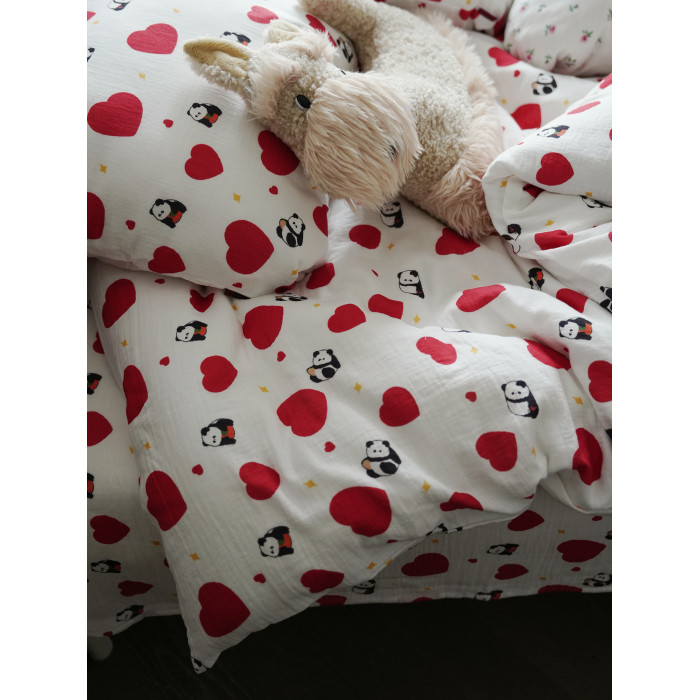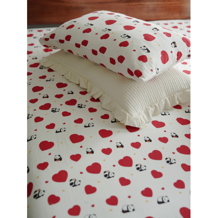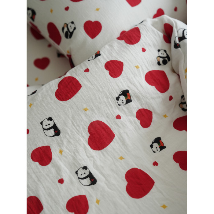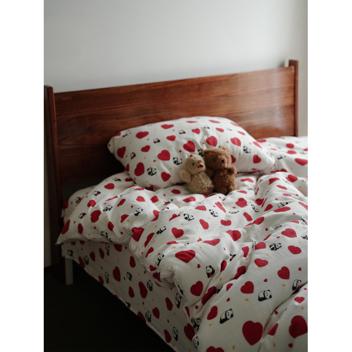 愛心熊貓 高密純棉柔軟紗布床單被套床笠枕套單人被罩宿舍床品1.2