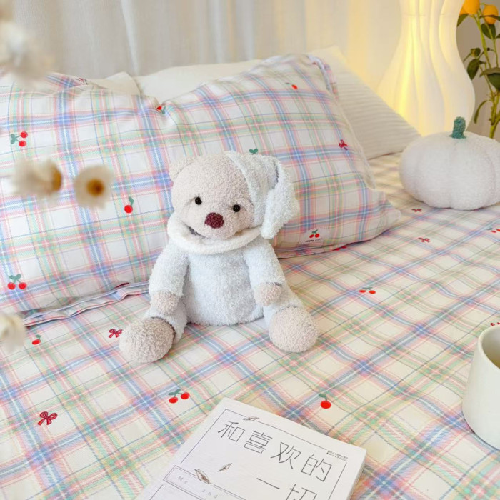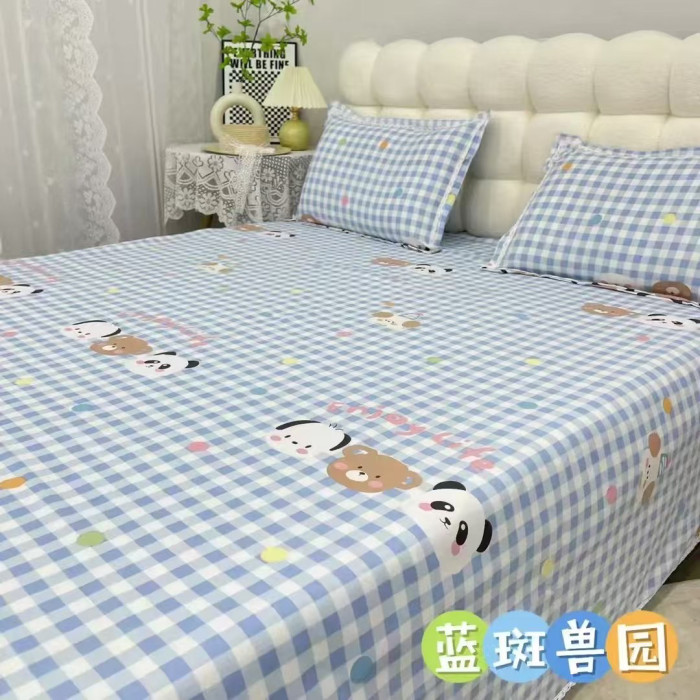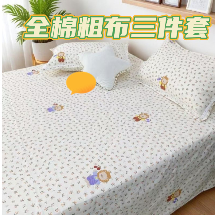 夏季純棉細紗緞條老粗布床單三件套 1.5m1.8m加厚老粗布帆布床罩