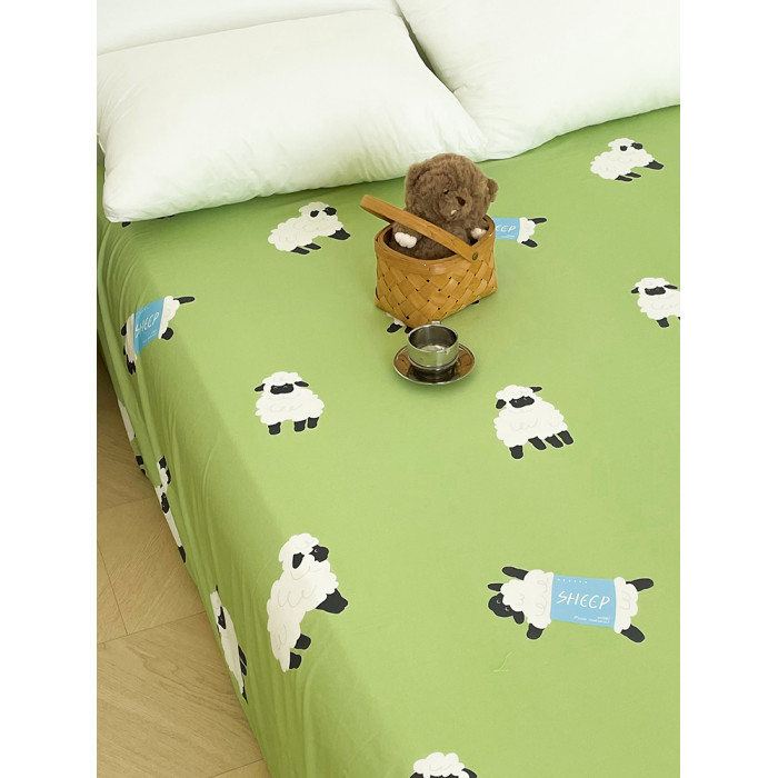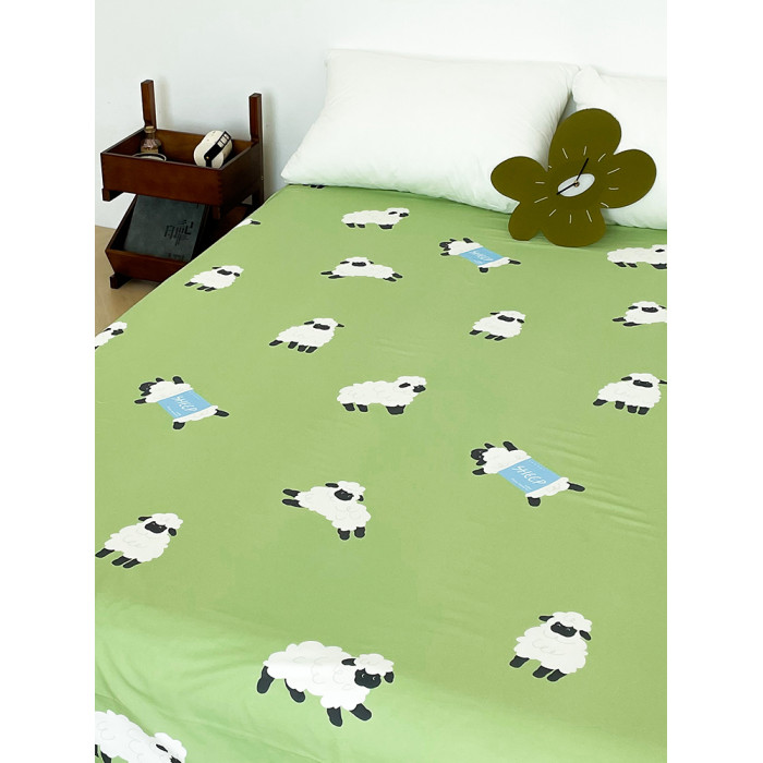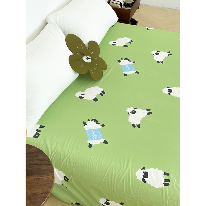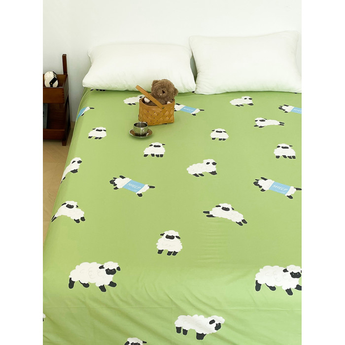 小羊有春天 原創小羊插畫100全棉床單床笠綠色系可愛小羊單件床品