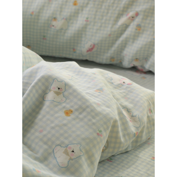 開心小狗夏季藍色可愛母嬰級a類雙層紗布兒童床單單件純棉100全棉