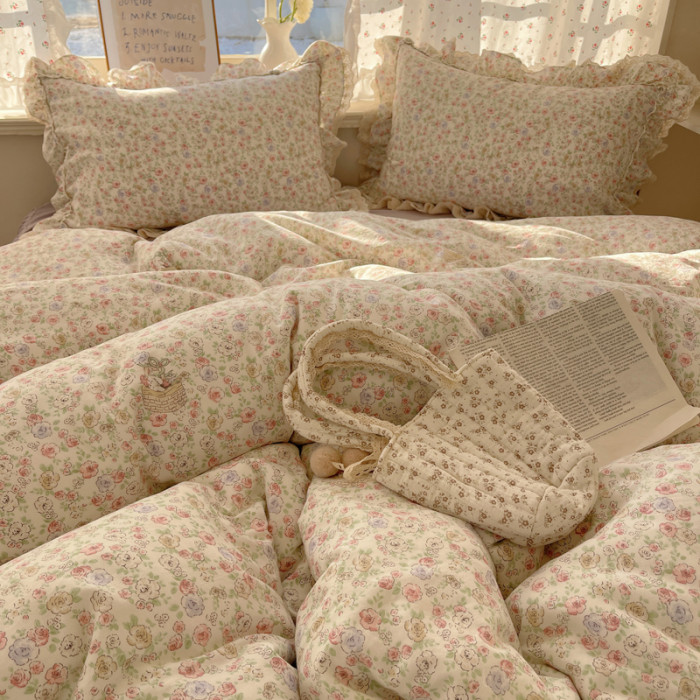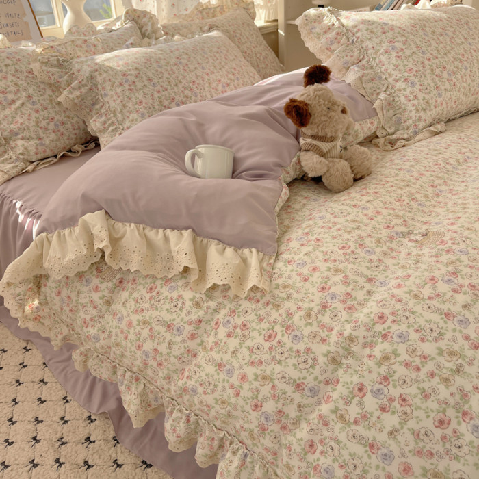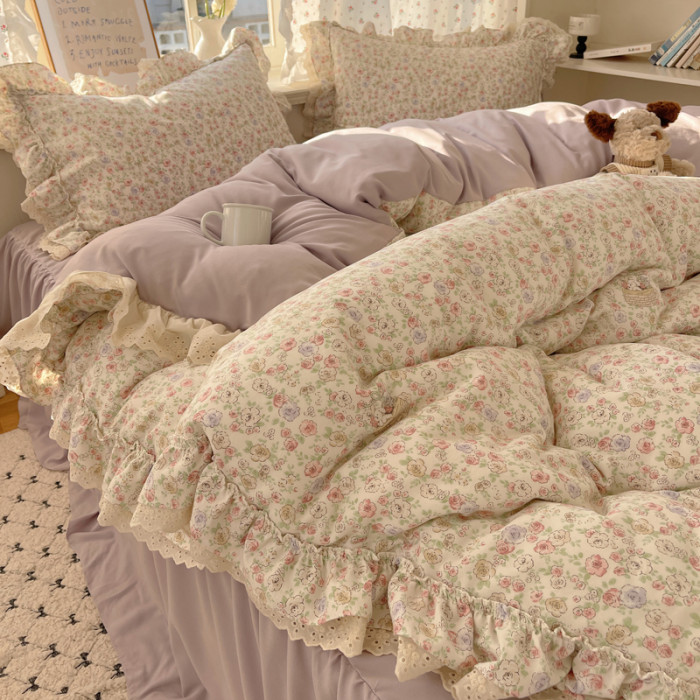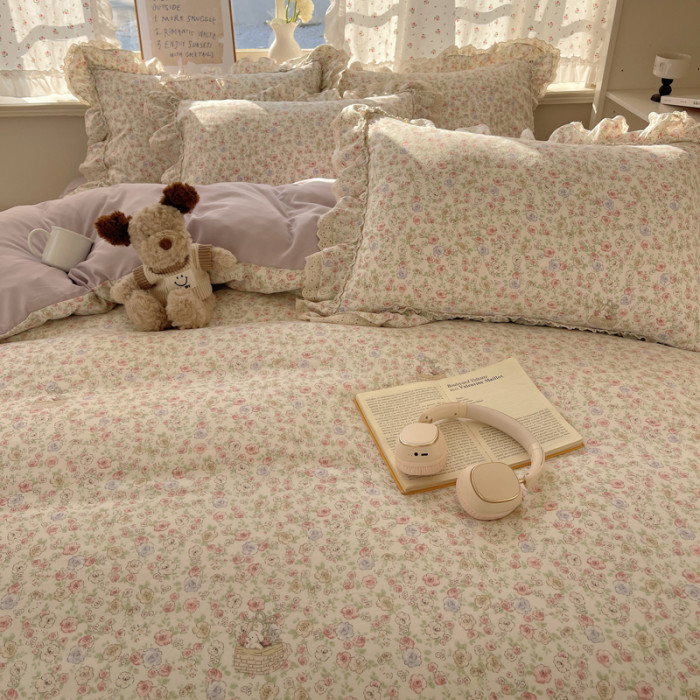 甜蜜小碎花仙女蕾絲花邊床單四件套柔軟雙層紗被套被單宿舍三件套