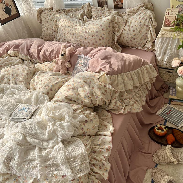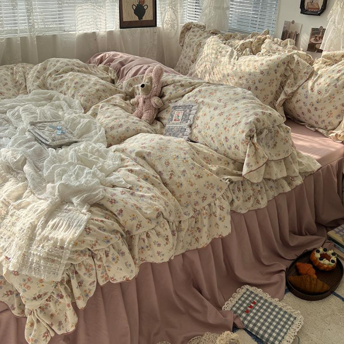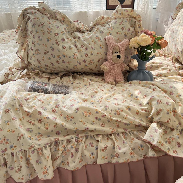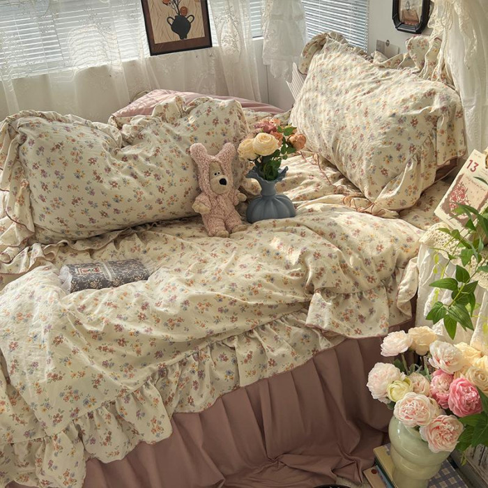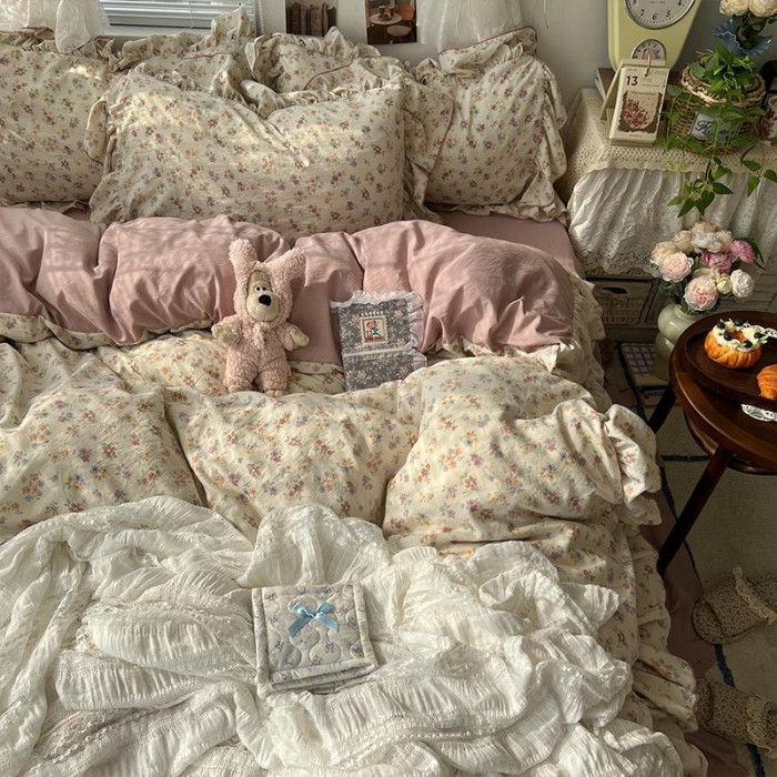 田園文藝少女小碎花水洗棉床單四件套柔軟花邊被套被單宿舍三件套