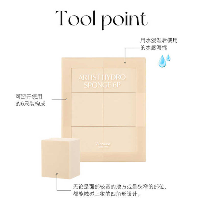 piccasso 方形水感化妝海綿6p 柔軟有彈性 上妝粉撲