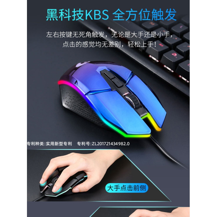 達爾優牧馬人em915滑鼠遊戯專用有線電競機械筆記型電腦桌上型lol宏