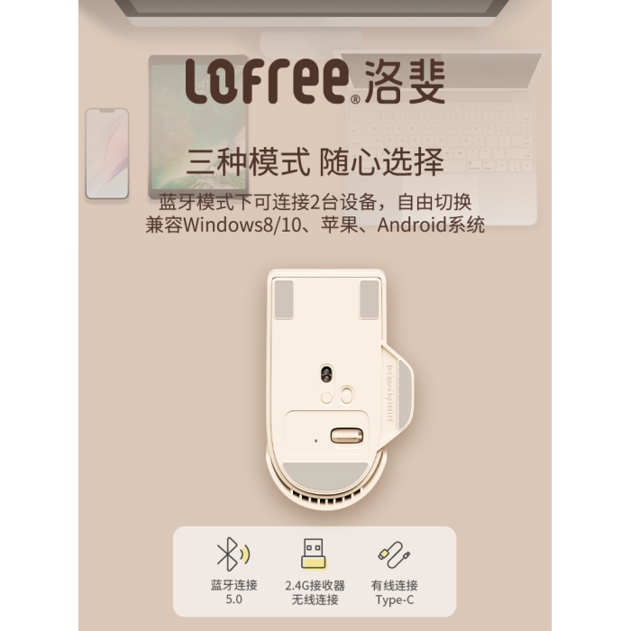 LOFREE洛斐小翹滑鼠貓咪無線三模藍牙辦公可愛女生筆記型電腦ipad