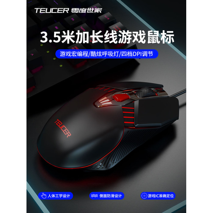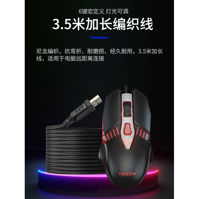 電腦USB滑鼠有線加長3米線按鍵宏電競遊戯商務辦公CF吃雞LOL通用