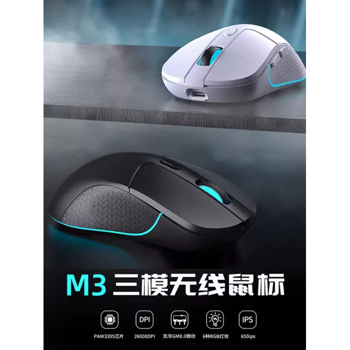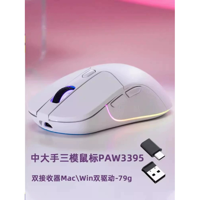 M3A3【Type-c接收器】79g三模繖繩線RGB大手白色