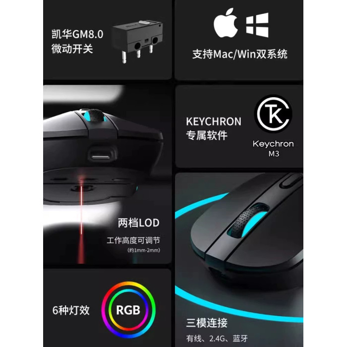 Keychron M3無線滑鼠中大手有線藍牙三模RGB滑鼠電腦辦公電競遊戯
