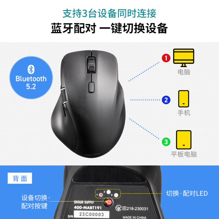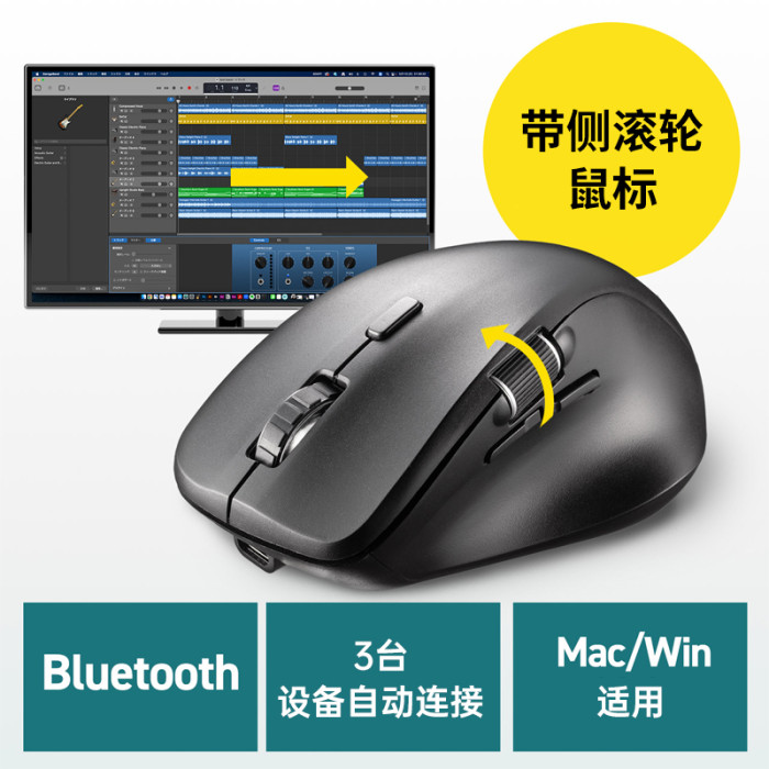 日本SANWA無線藍牙滑鼠充電靜音縱橫雙滾輪電腦人體工學男女無聲