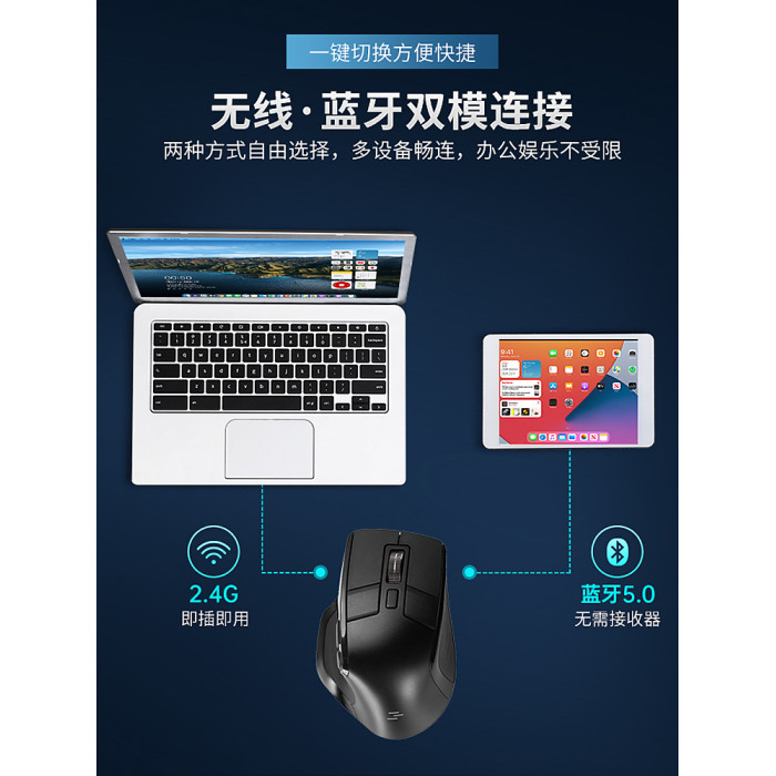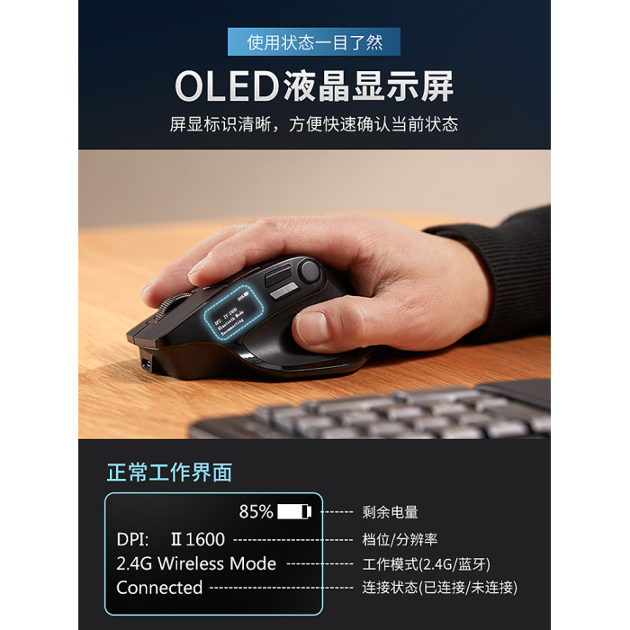 無線/藍牙雙模 充電靜音 顯屏 可自定義按鍵 黑色