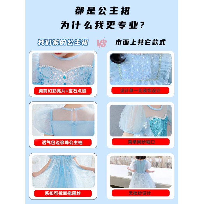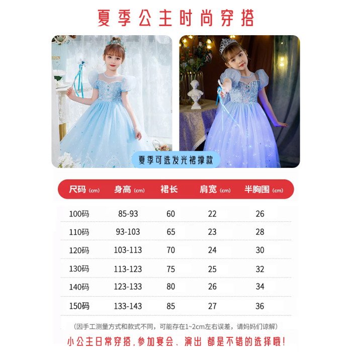 愛莎公主裙女童艾莎夏季連衣裙拖地冰雪奇緣艾沙愛沙兒童生日夏裝