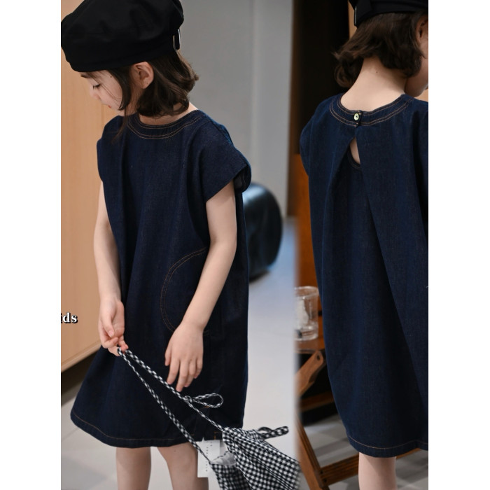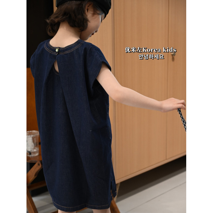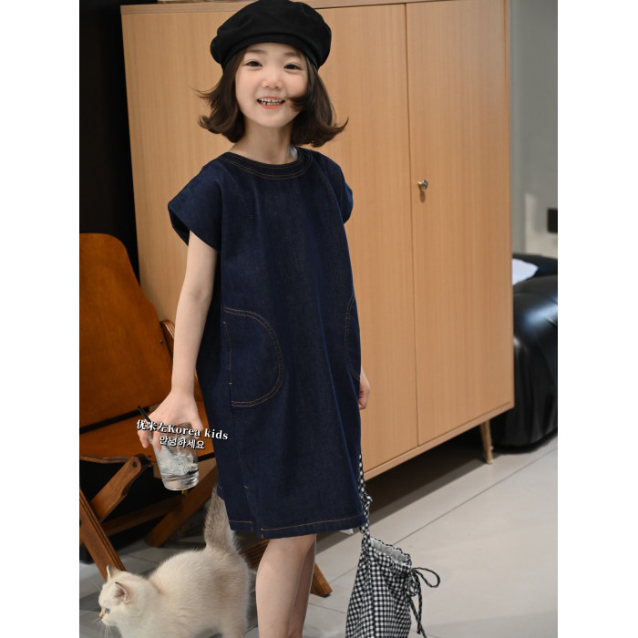 韓國童裝夏裝女童連衣裙新款洋氣復古兒童做舊時尚牛仔公主短袖裙