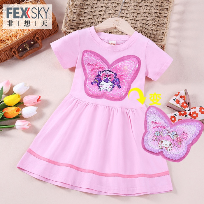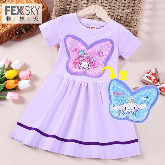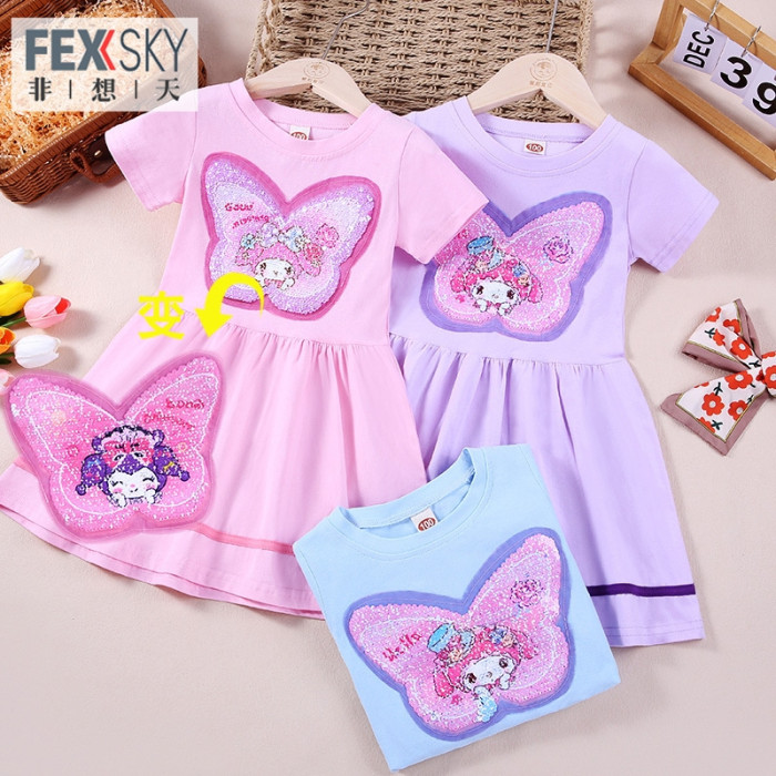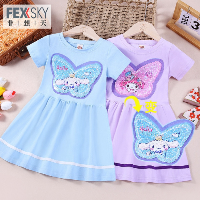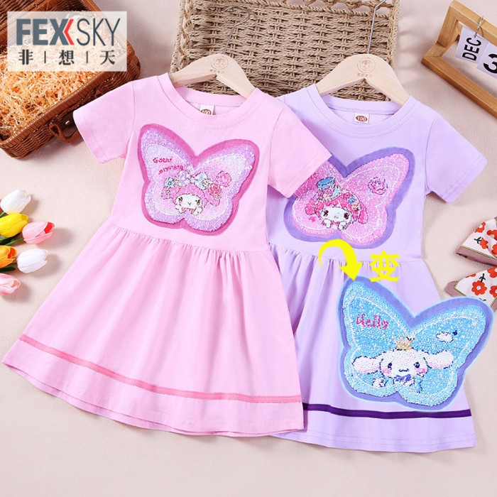 女童亮片翻轉變色連衣裙兒童玉桂狗可變圖案變臉庫洛米小裙子衣服