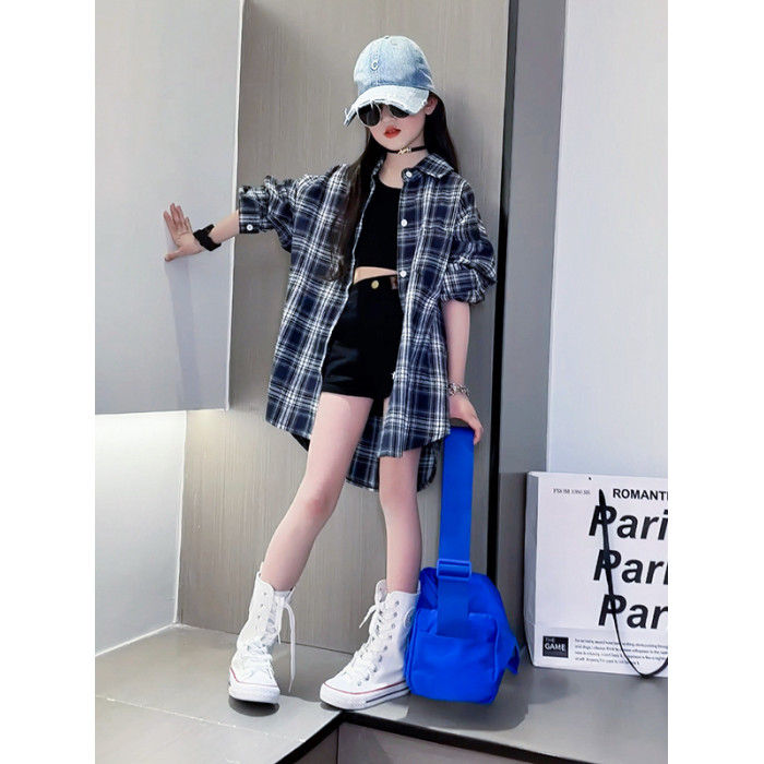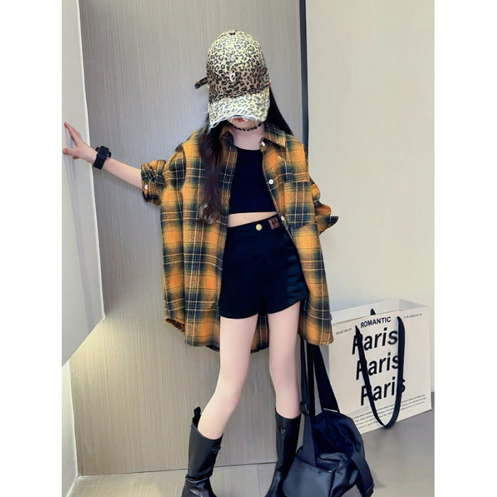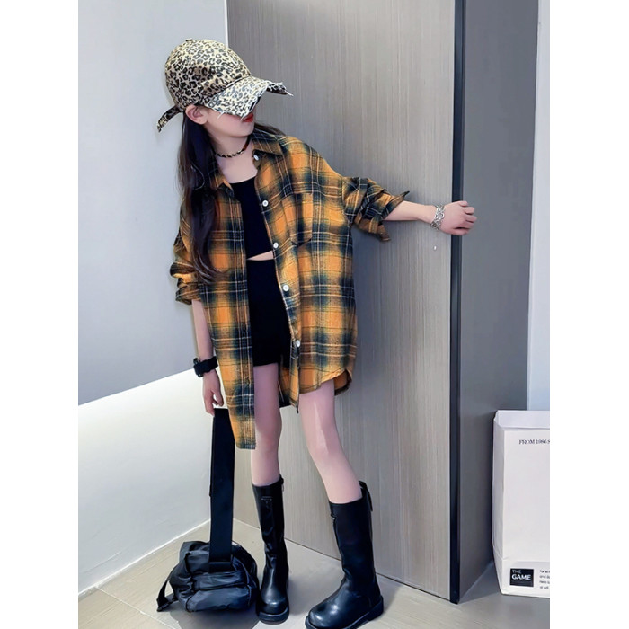 女童襯衫長袖春秋2025新款洋氣兒童上衣春裝女孩大童格子襯衣外套