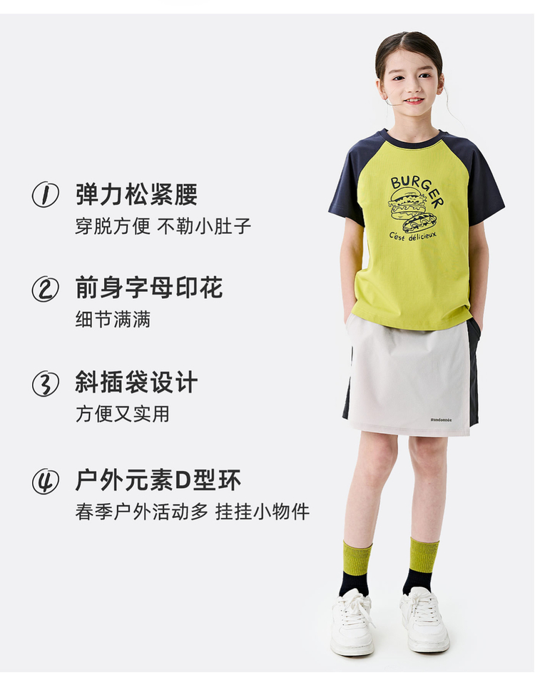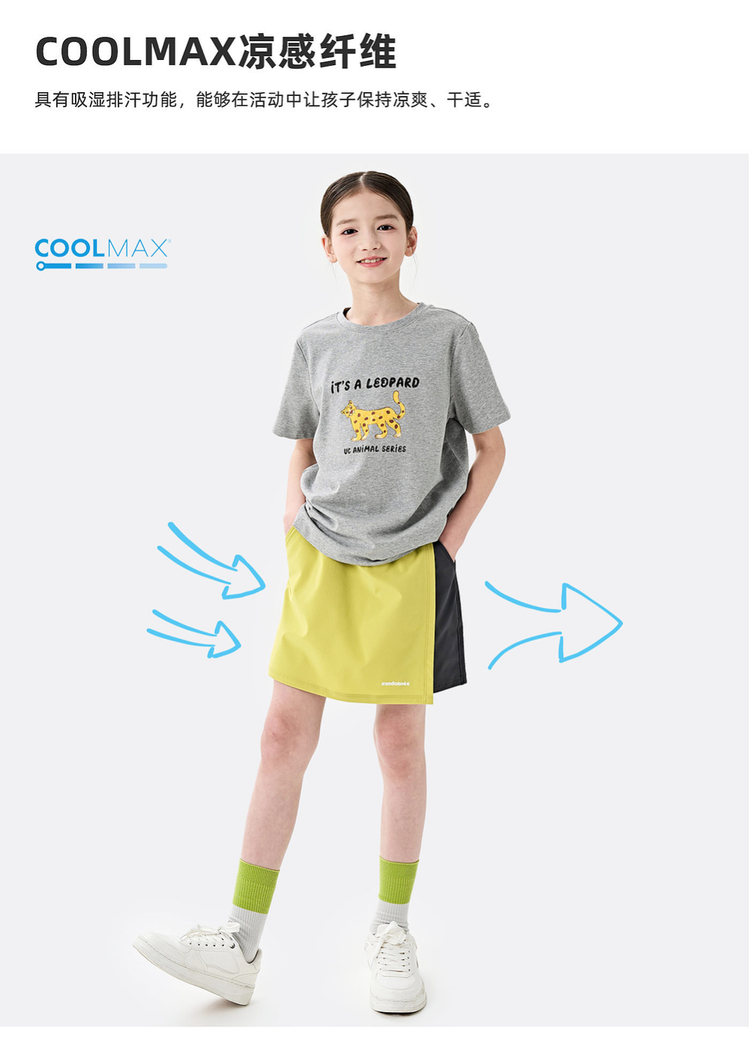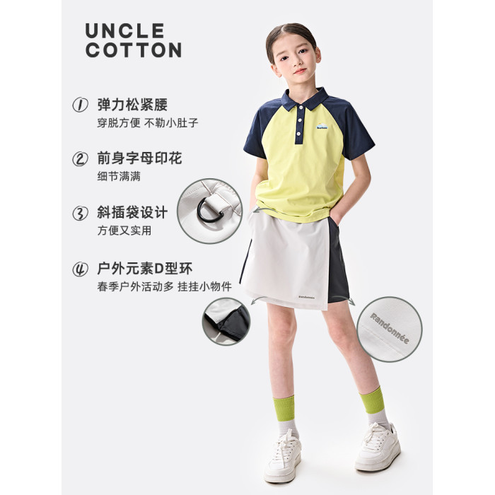 【coolmax防走光裙褲】棉叔叔女童休閒A字半身裙夏涼感速乾工裝裙