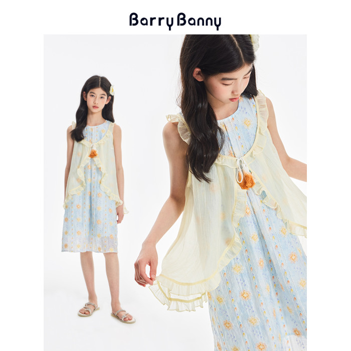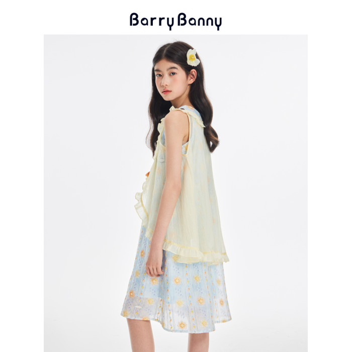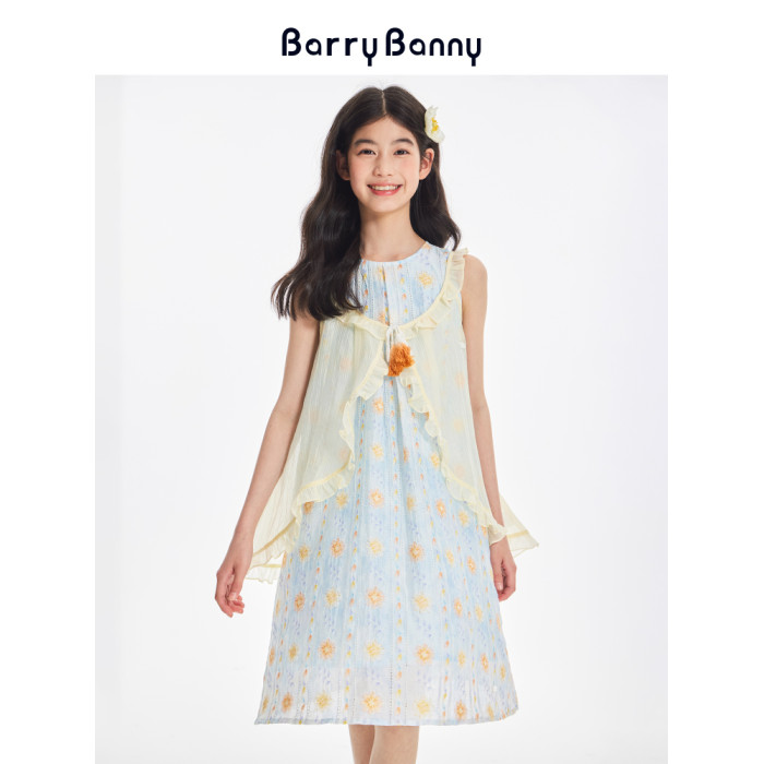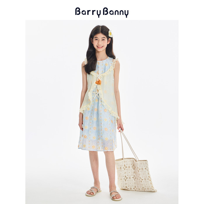 BarryBanny女童萊賽爾連衣裙夏季度假背心裙甜美曡穿沙灘風長裙