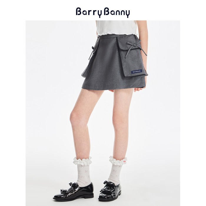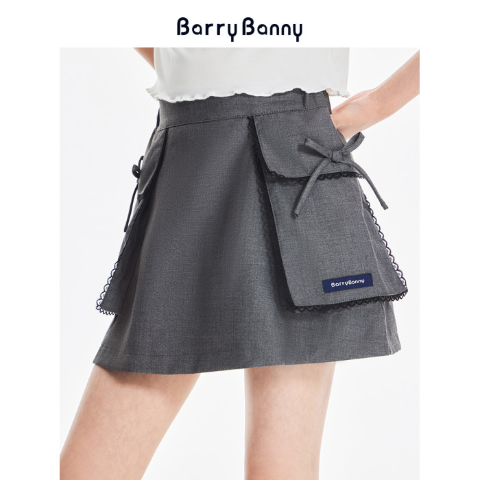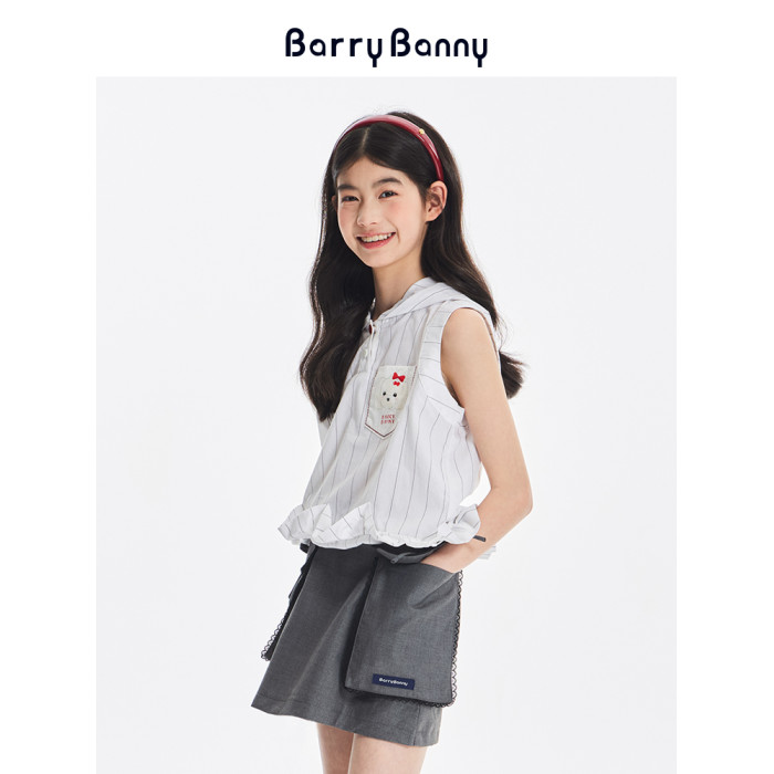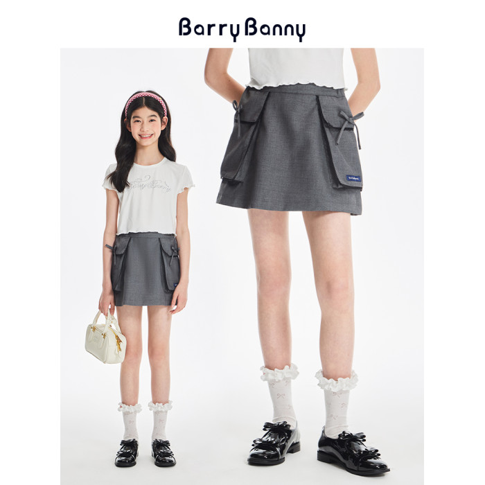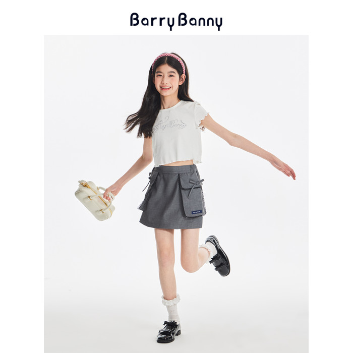 BarryBanny女童學院風半身裙夏季新款中大童A字短裙時髦透氣裙子