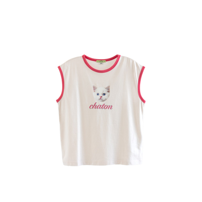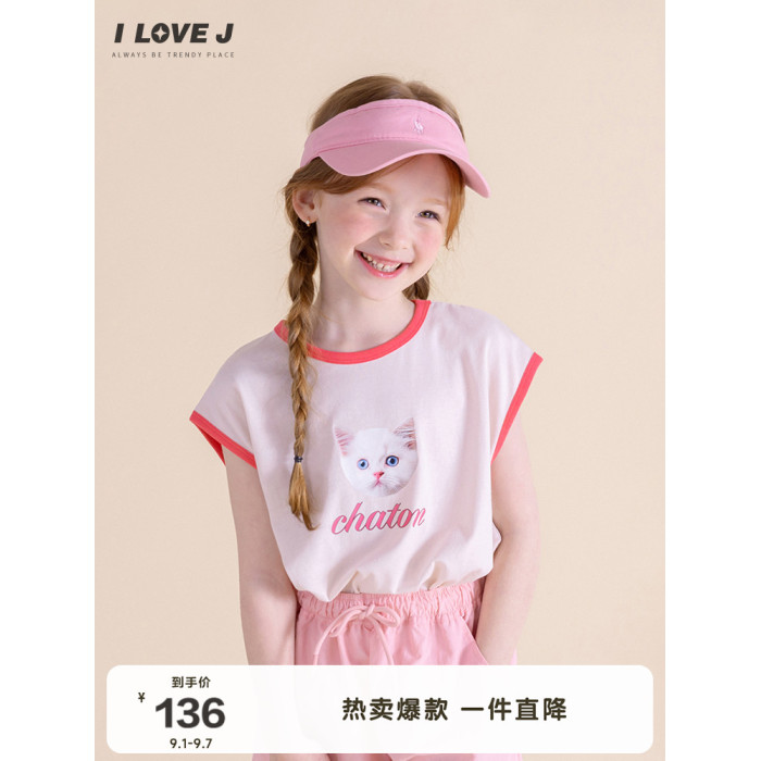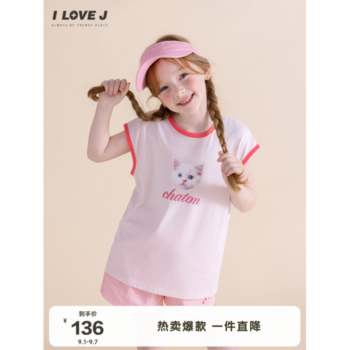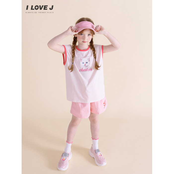 ILOVEJ韓國童裝2025夏季女童小貓莫代爾無袖T恤透氣上衣/JXUTO12