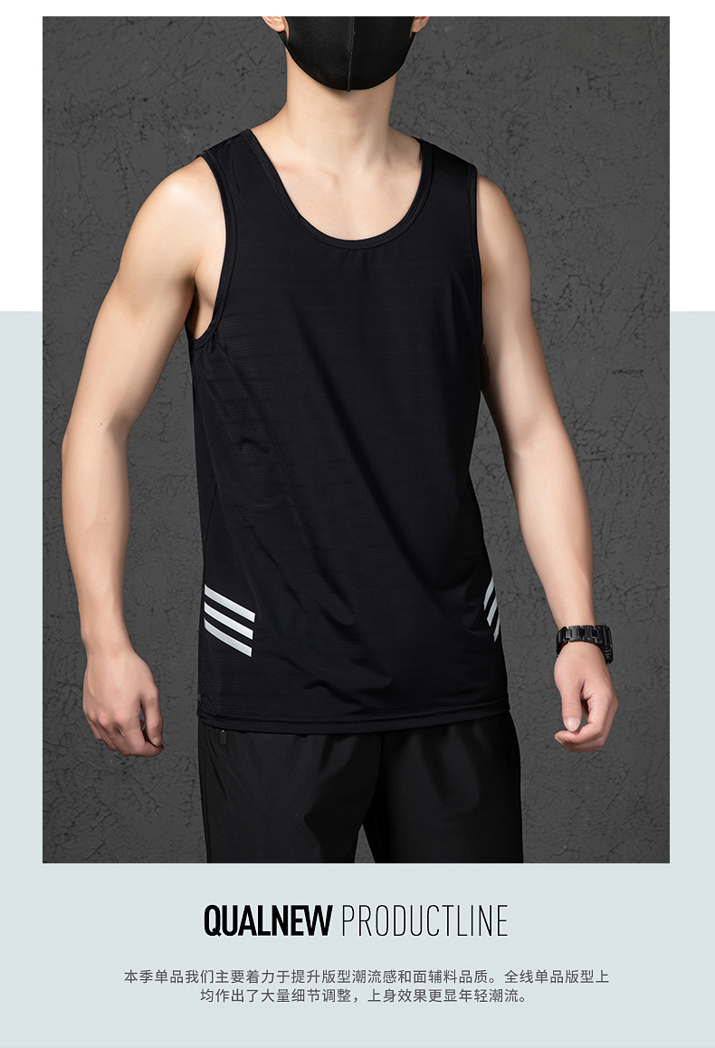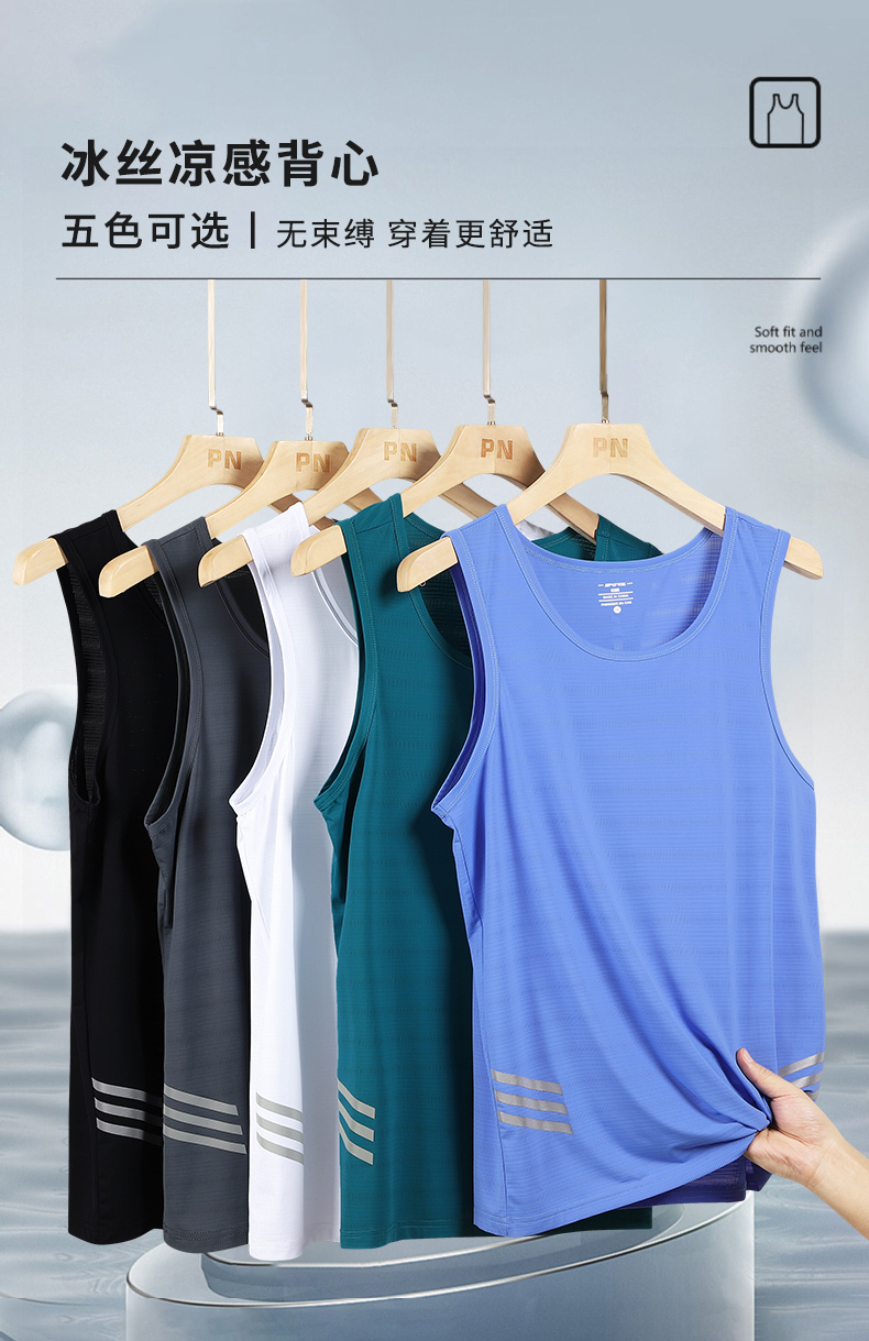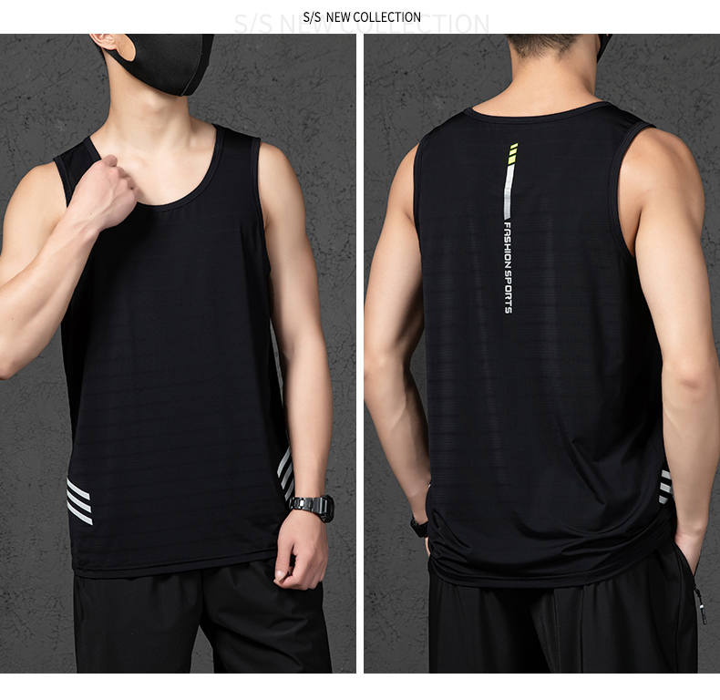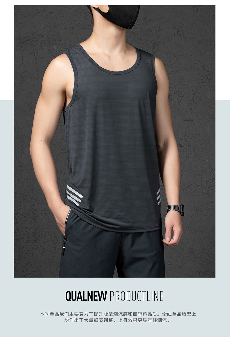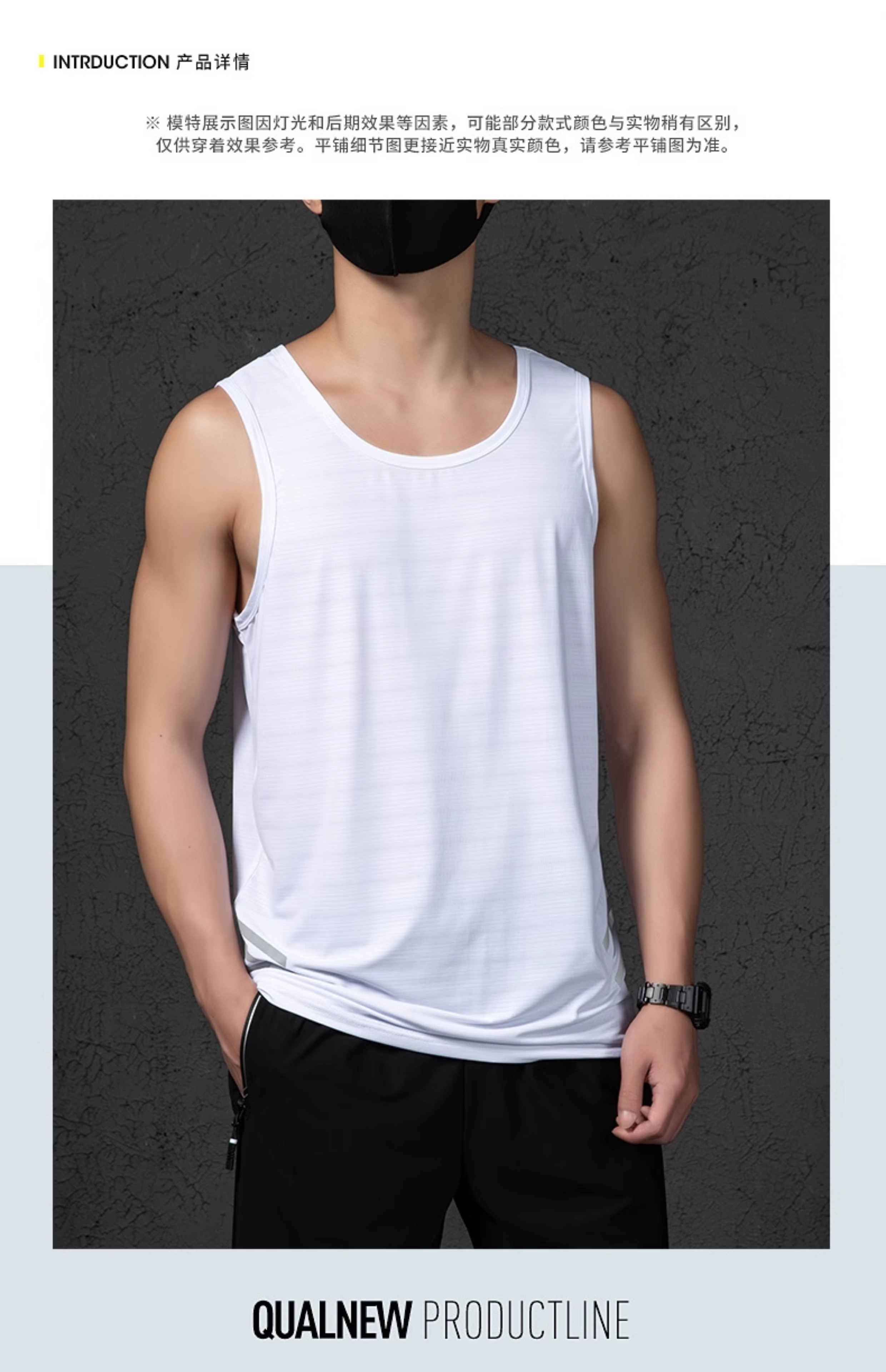 夏季冰絲無袖短袖T恤男寬松透氣運動速乾外穿坎肩背心健身訓練服