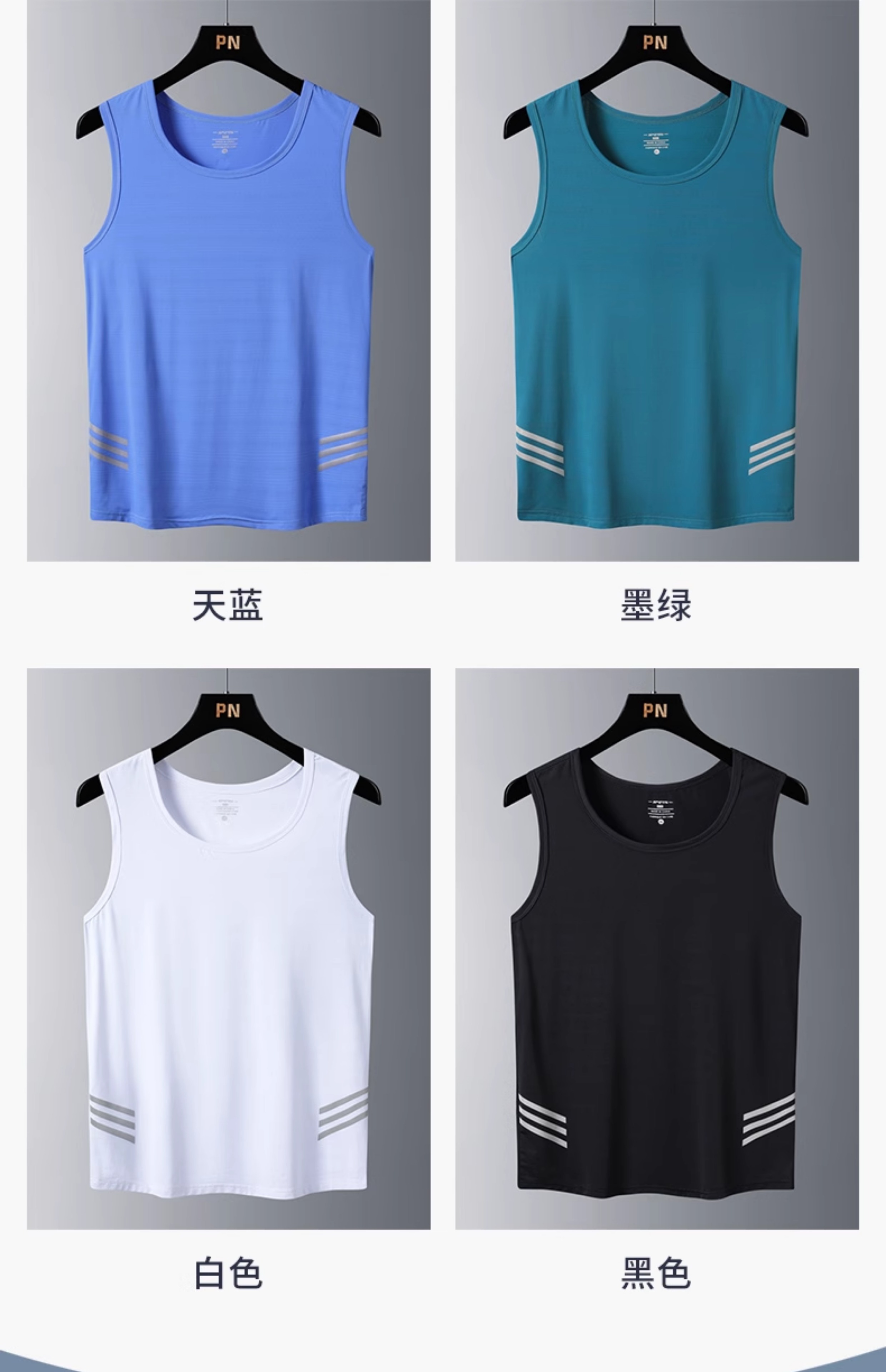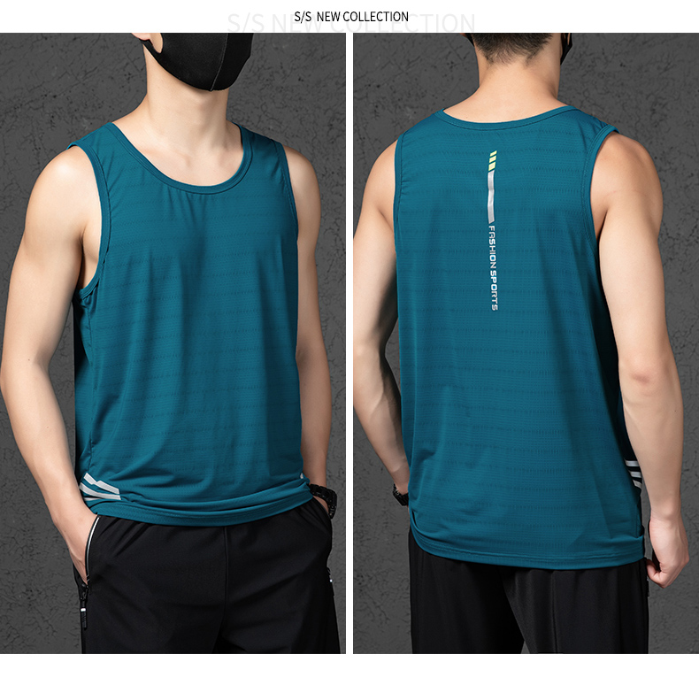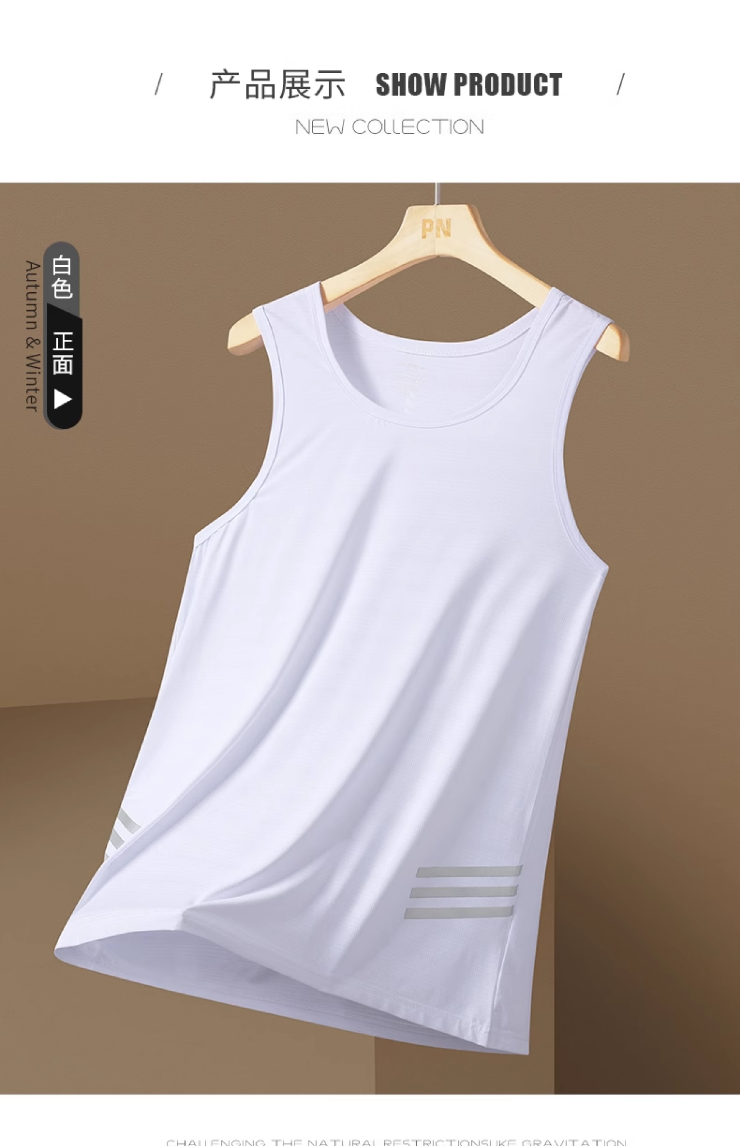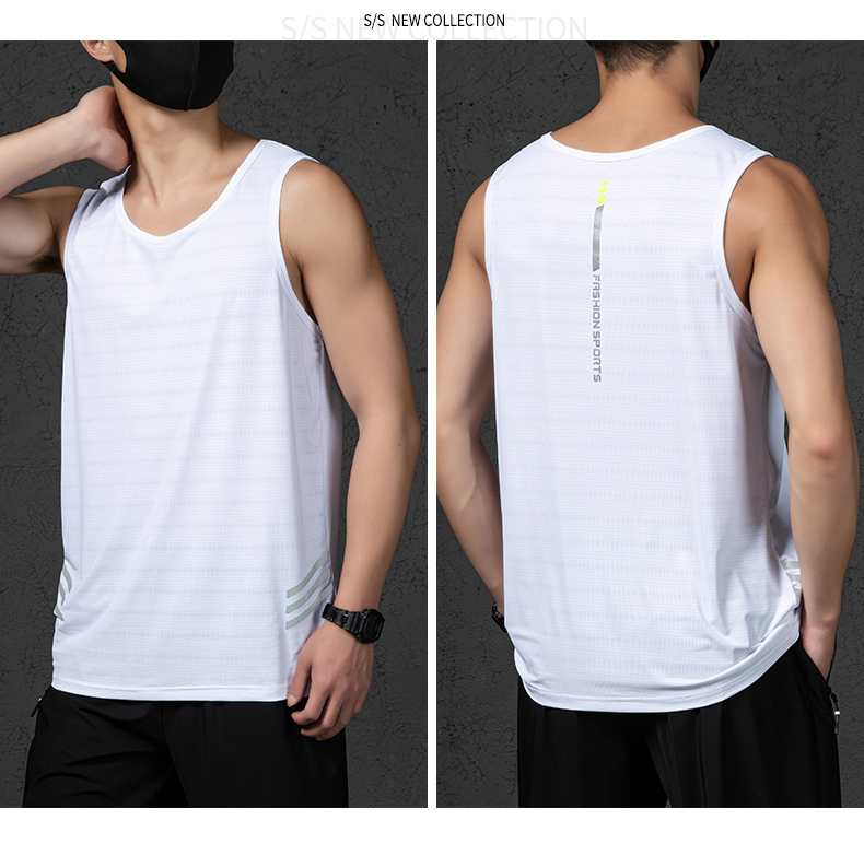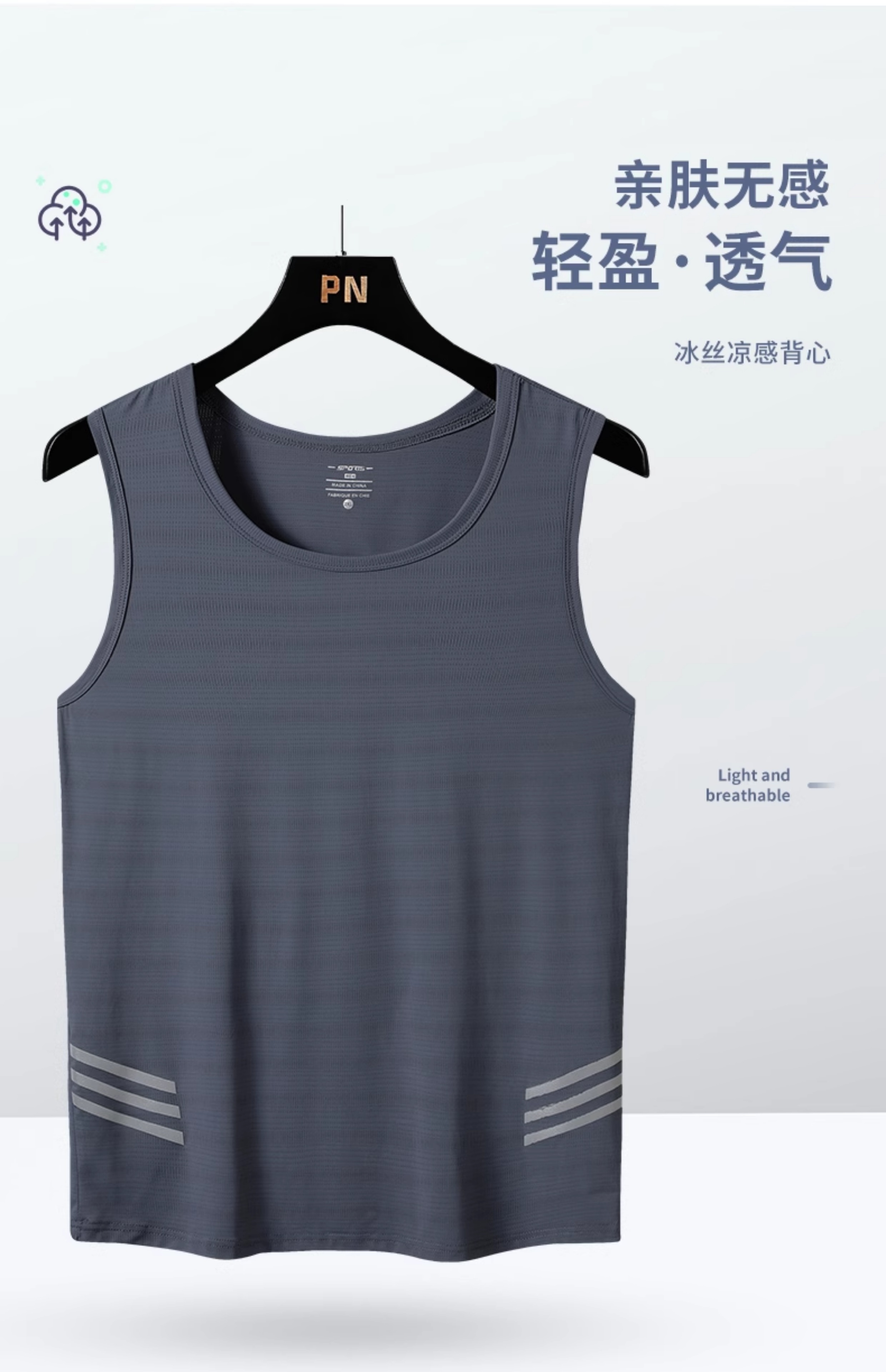 夏季冰絲無袖短袖T恤男寬松透氣運動速乾外穿坎肩背心健身訓練服