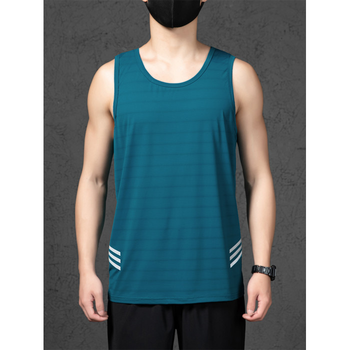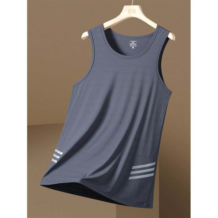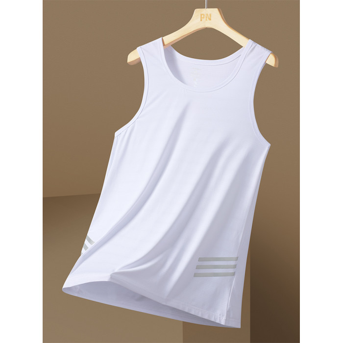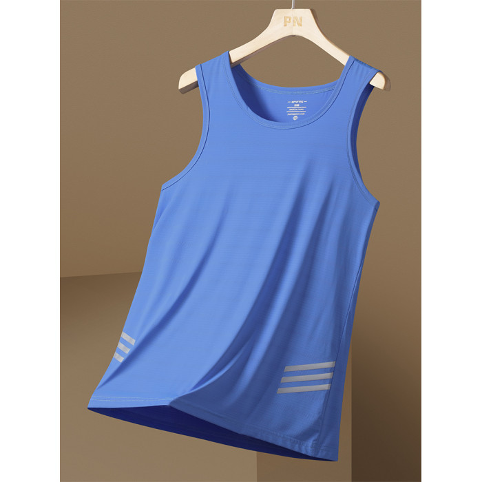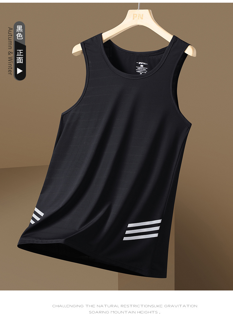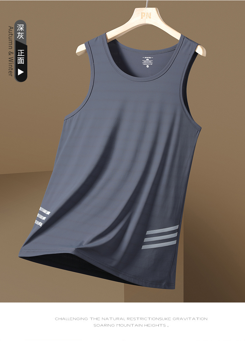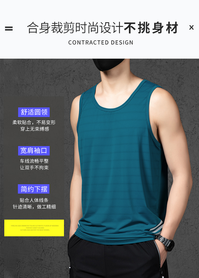夏季冰絲無袖短袖T恤男寬松透氣運動速乾外穿坎肩背心健身訓練服
