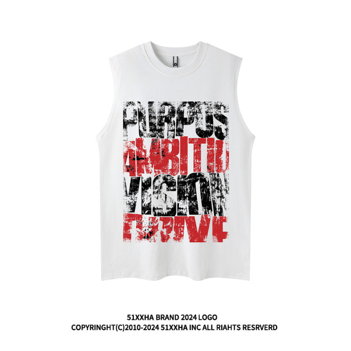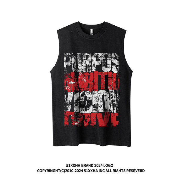 51嘻哈高街vibe復古背心男夏季潮牌美式塗鴉印花運動坎肩無袖T恤