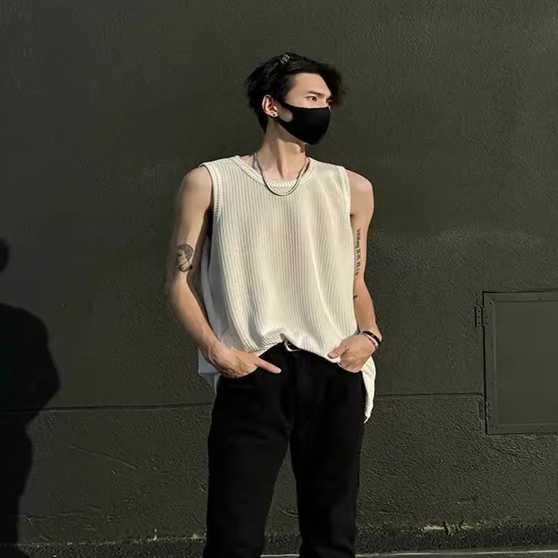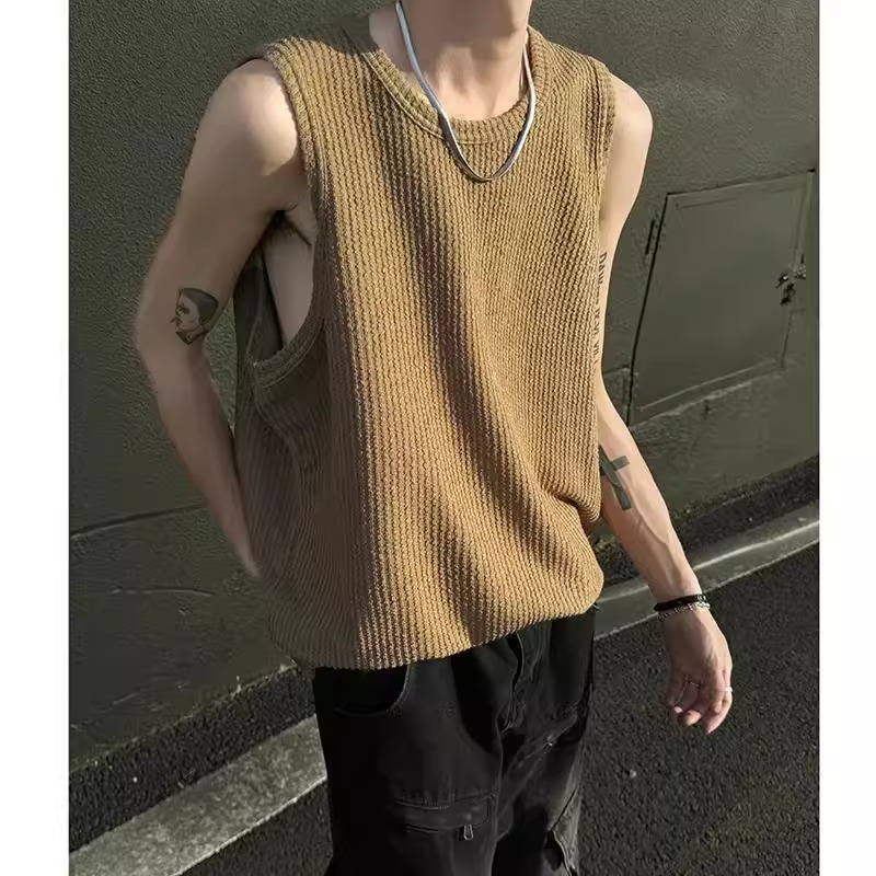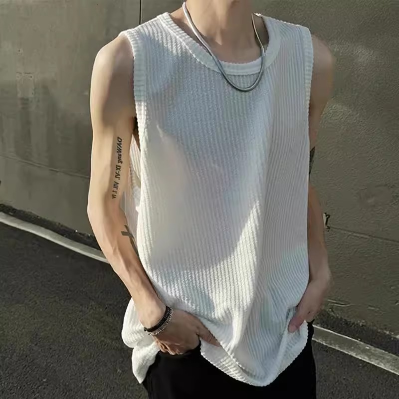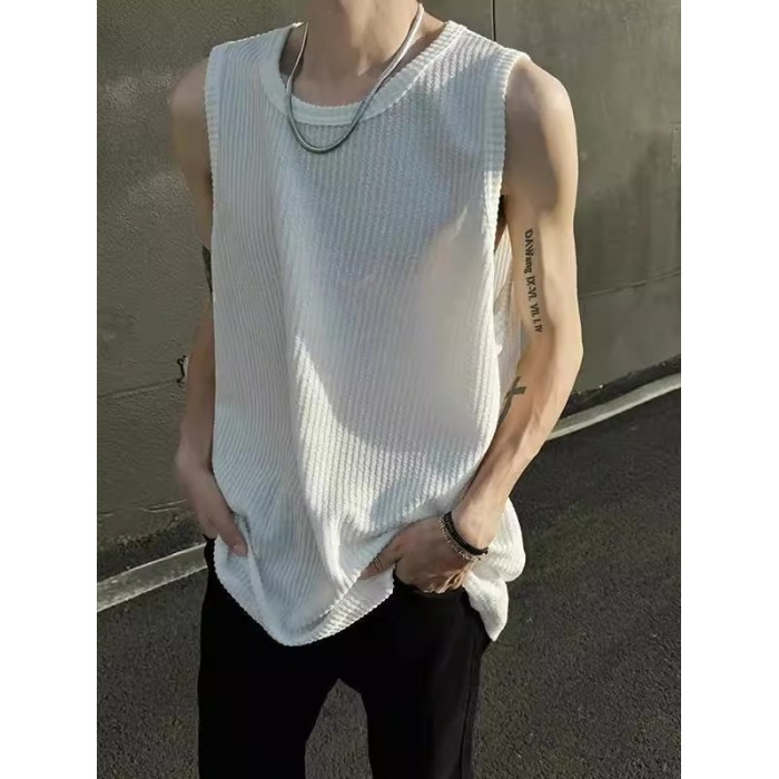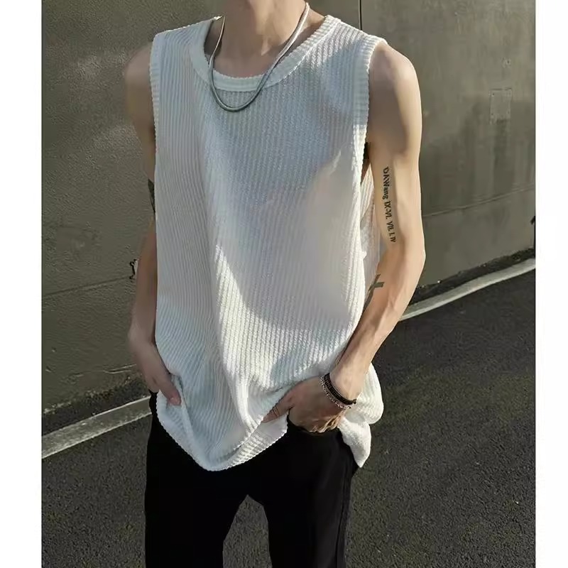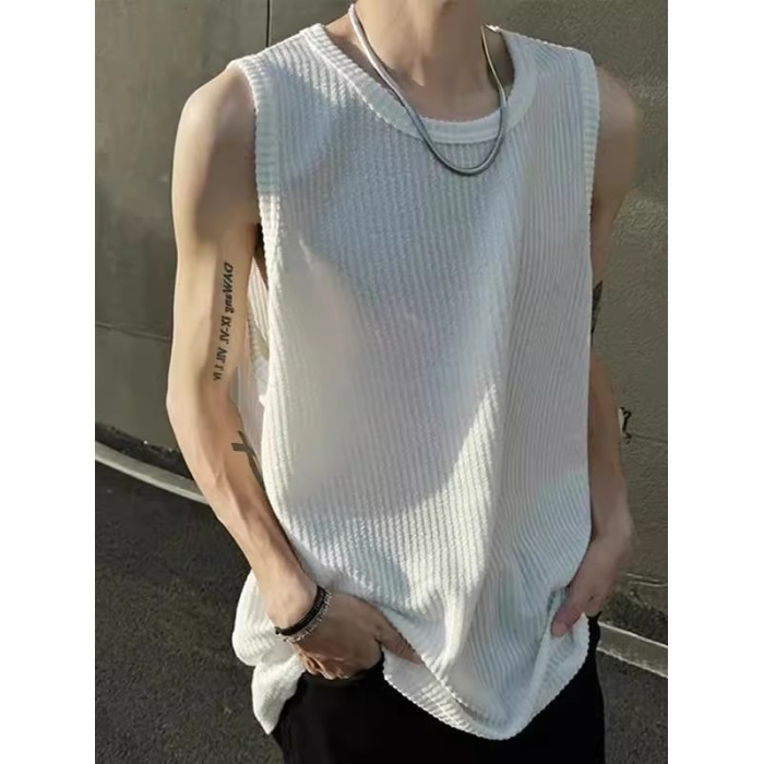 特大碼300斤肌理感褶皺坎肩冰絲背心男女夏季寬松涼感健身無袖ins