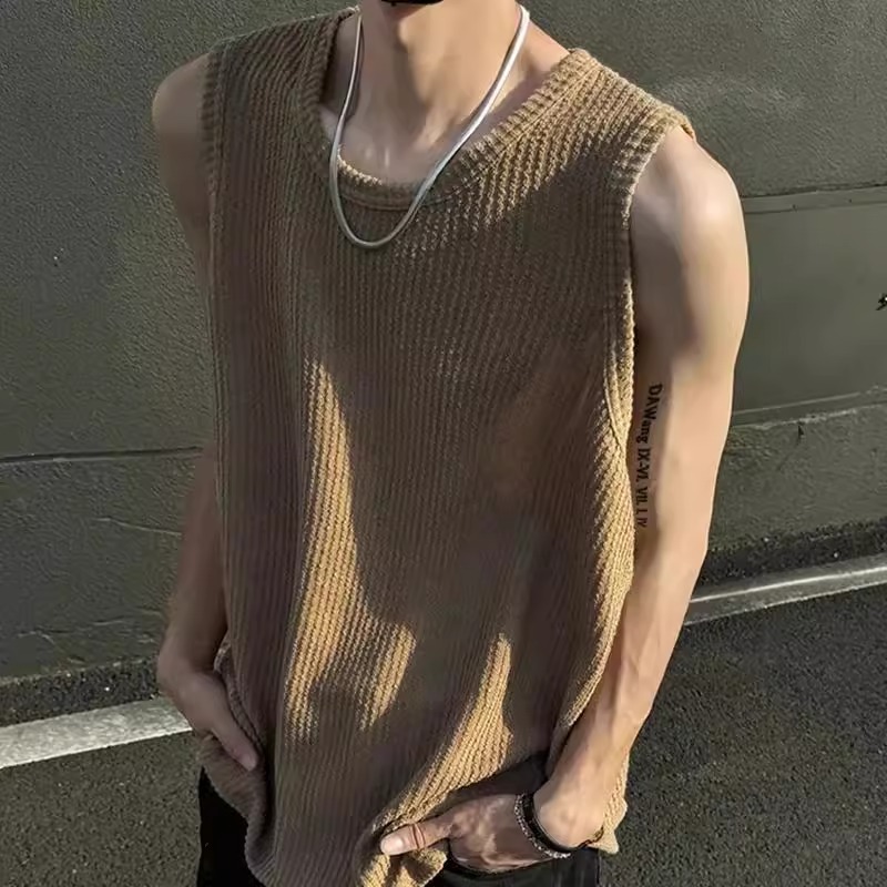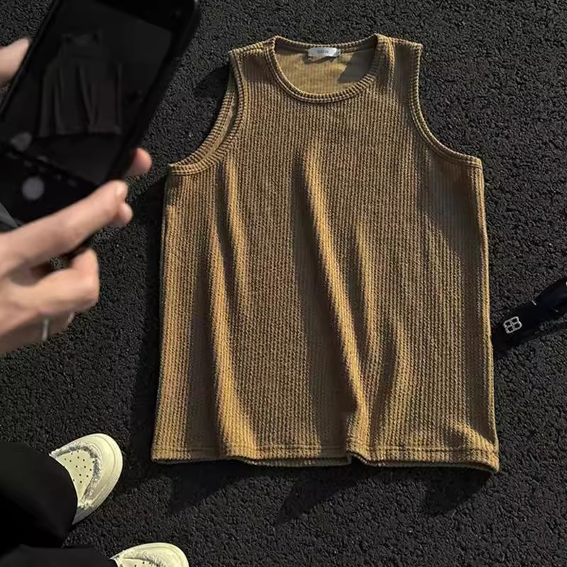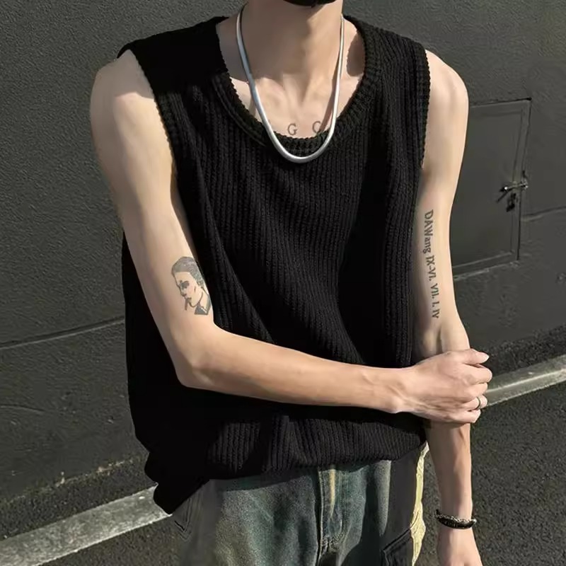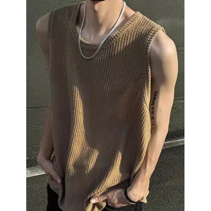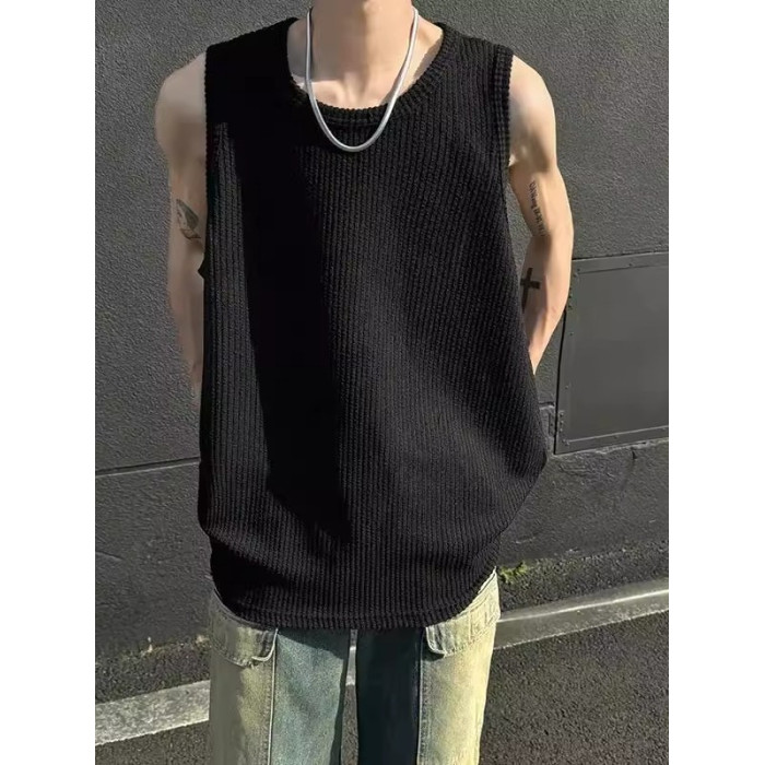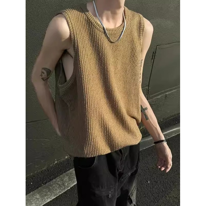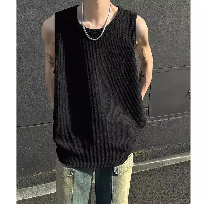 特大碼300斤肌理感褶皺坎肩冰絲背心男女夏季寬松涼感健身無袖ins