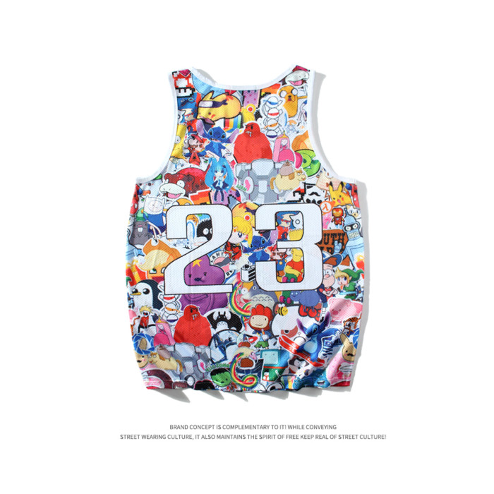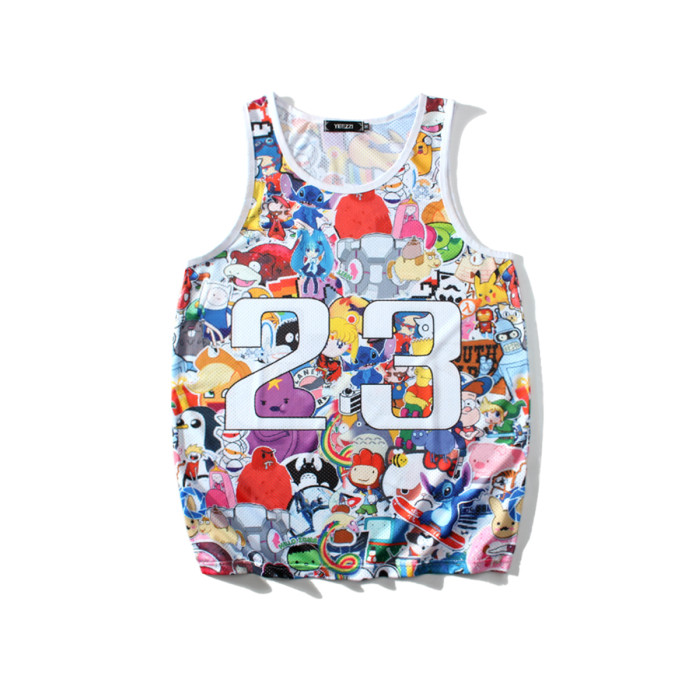 夏季網眼汗背心休閒情侶運動寬健身無袖坎肩短袖清涼印花圓領套頭